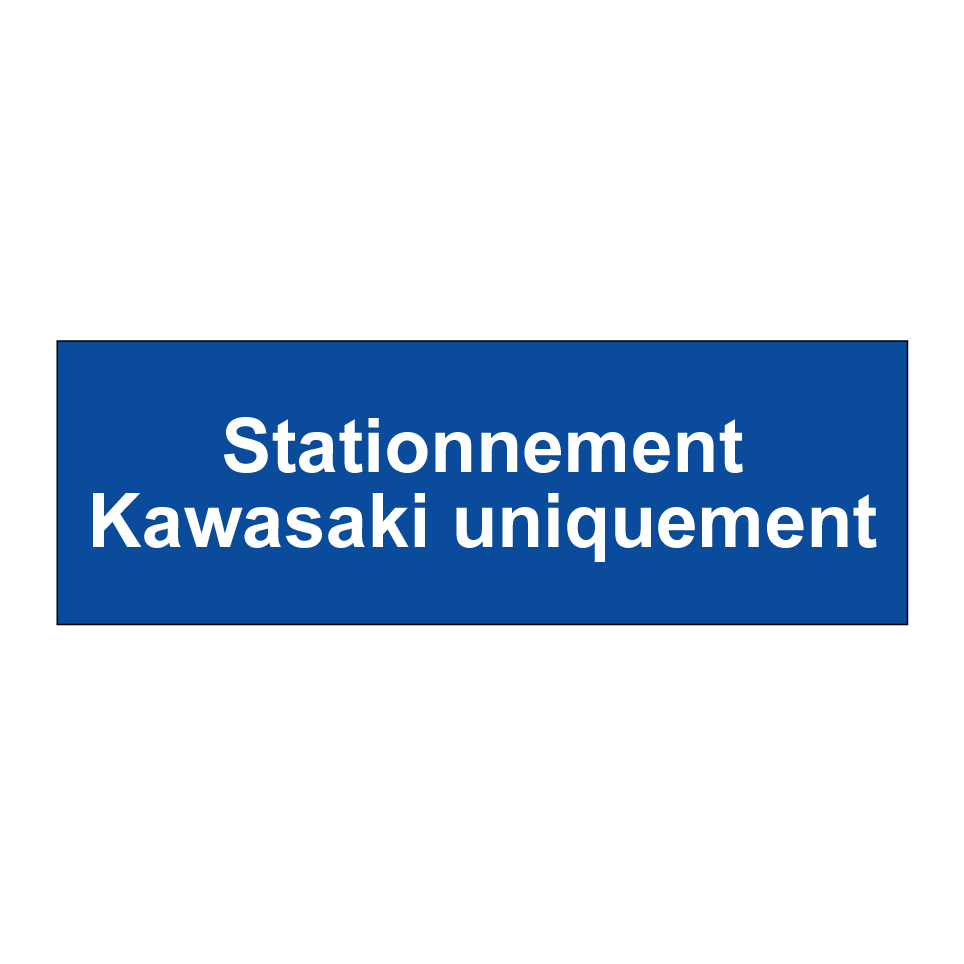 Panneau de stationnement avec le texte : "Stationnement Kawasaki uniquement".