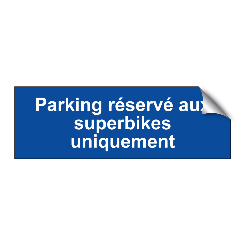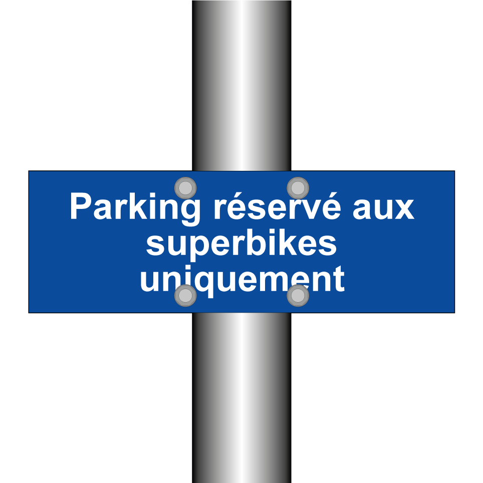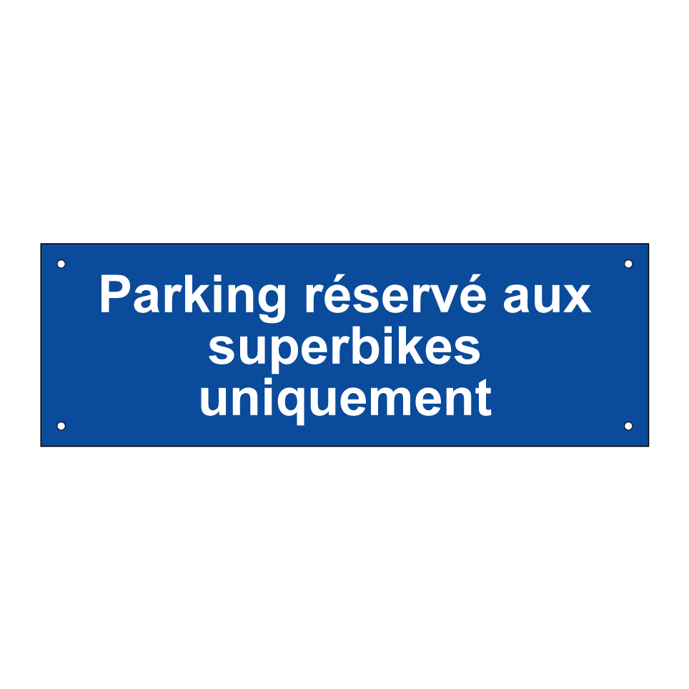 Panneau de stationnement avec le texte : "Parking réservé aux superbikes uniquement".
