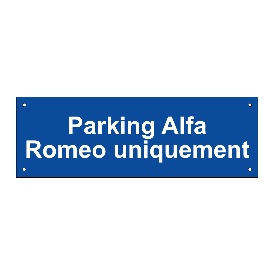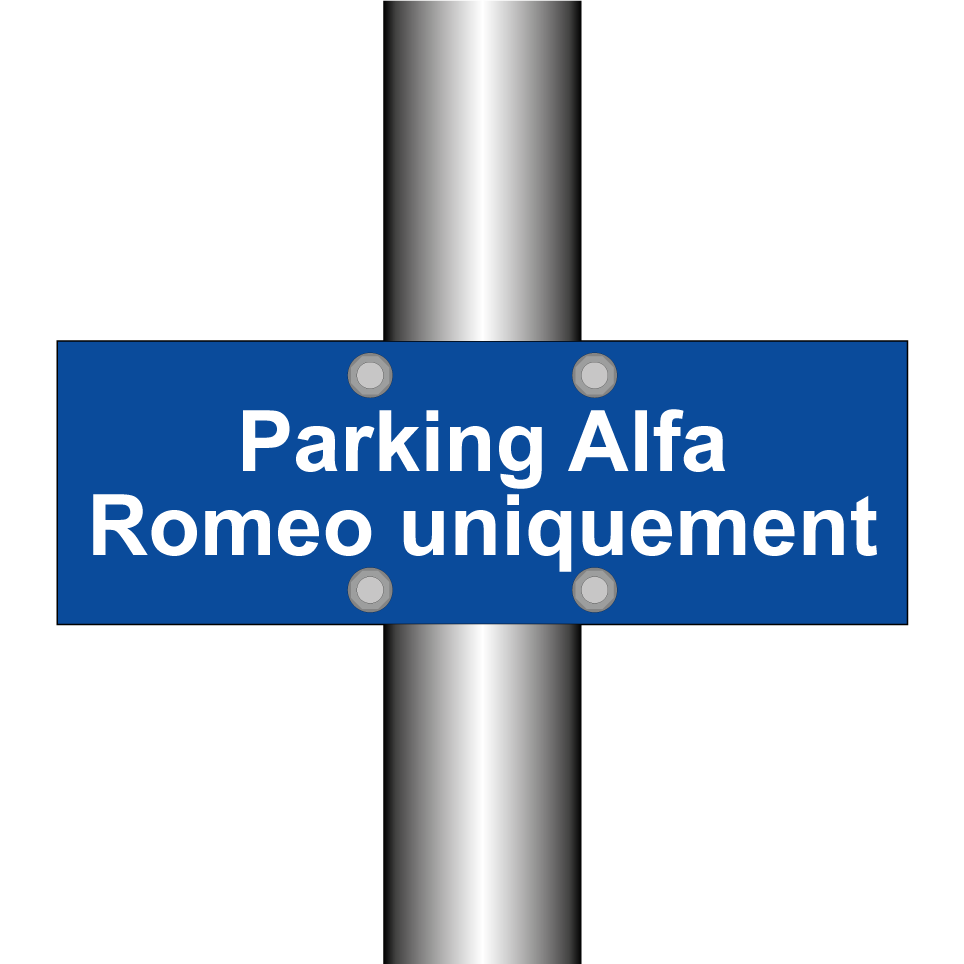 Panneau de stationnement avec le texte : "Parking Alfa Romeo uniquement".