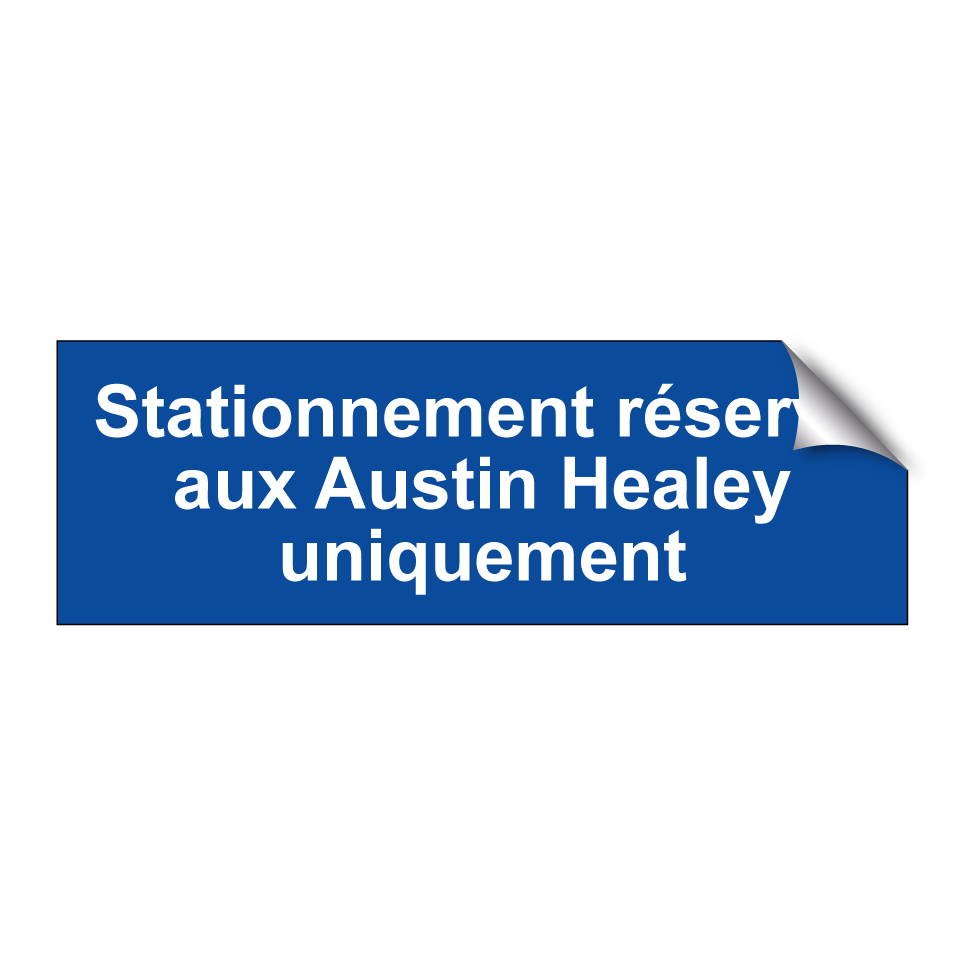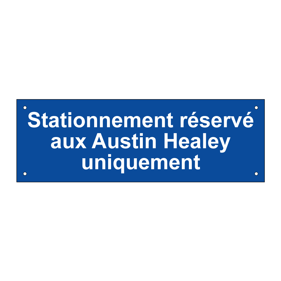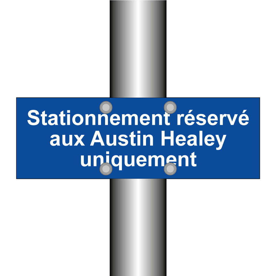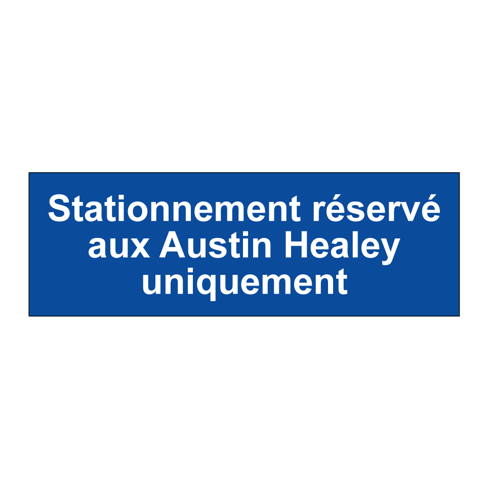 Panneau de stationnement avec le texte : "Stationnement réservé aux Austin Healey uniquement".