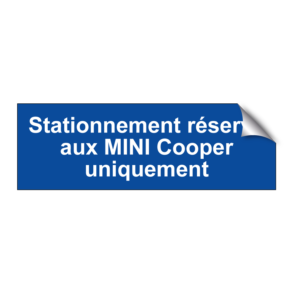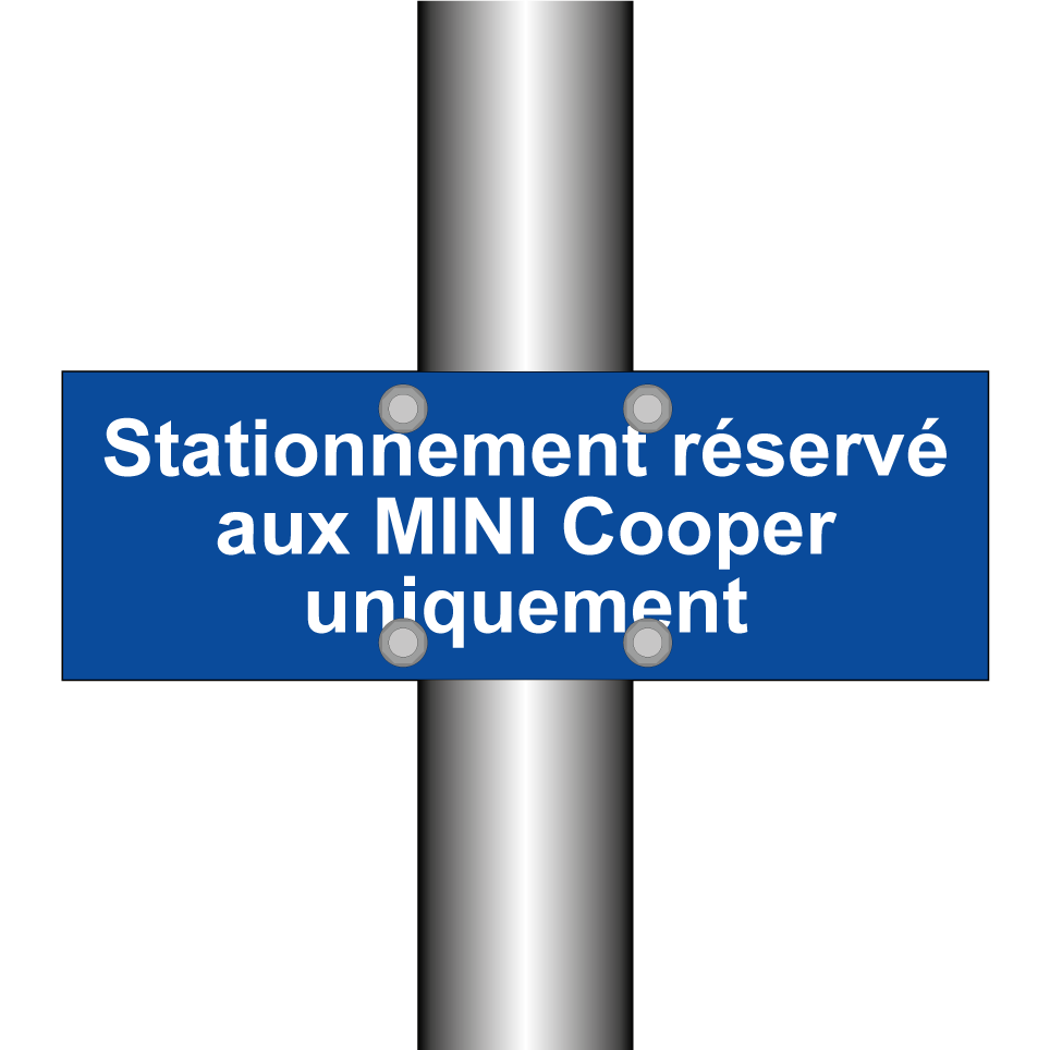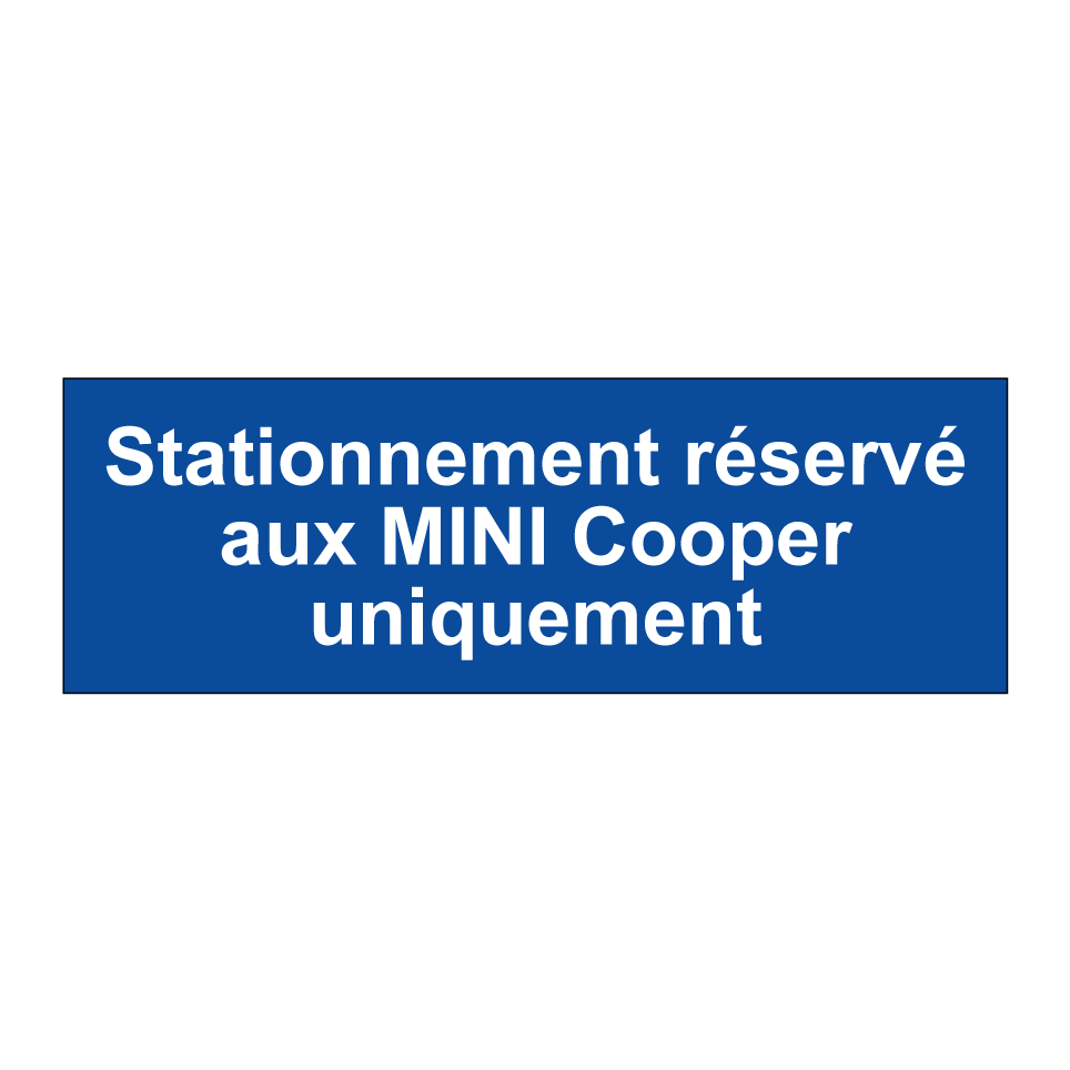 Panneau de stationnement avec le texte : "Stationnement réservé aux MINI Cooper uniquement".