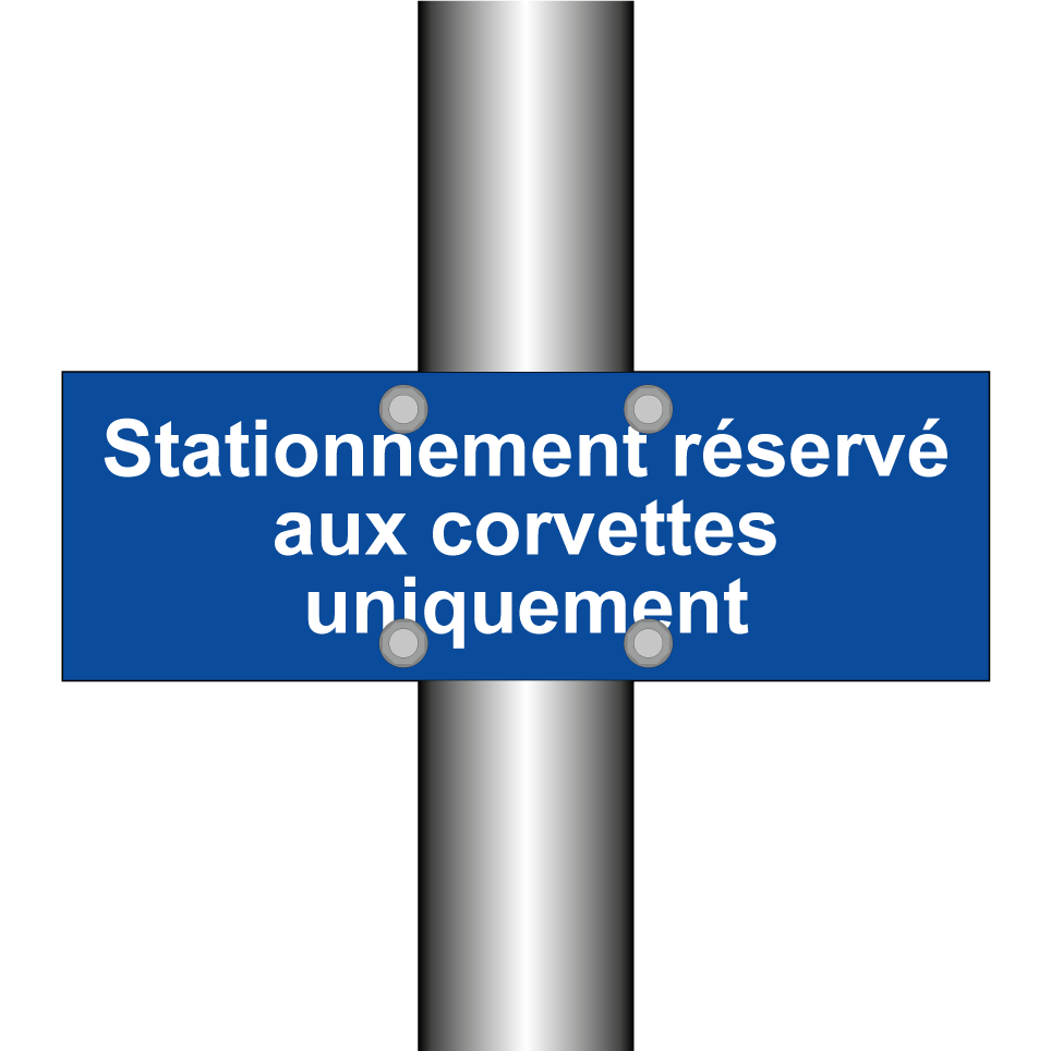 Panneau de stationnement avec le texte : "Stationnement réservé aux corvettes uniquement".