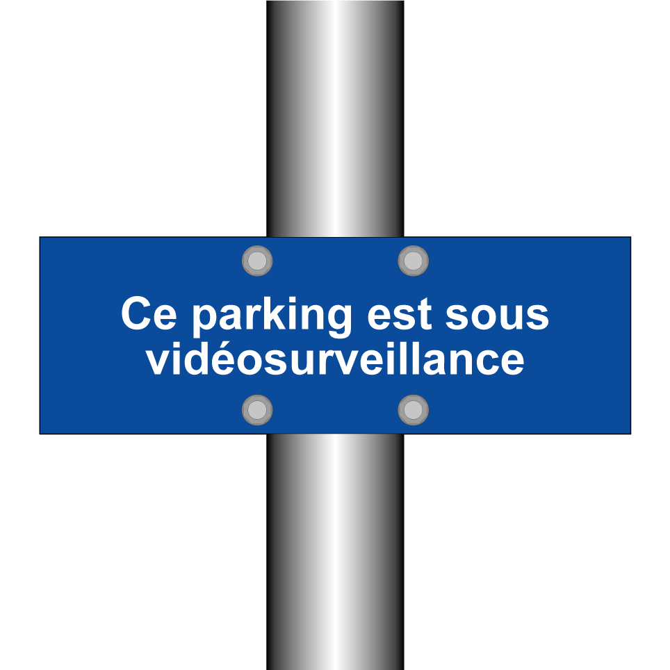 Panneau de stationnement avec le texte : "Ce parking est sous vidéosurveillance".