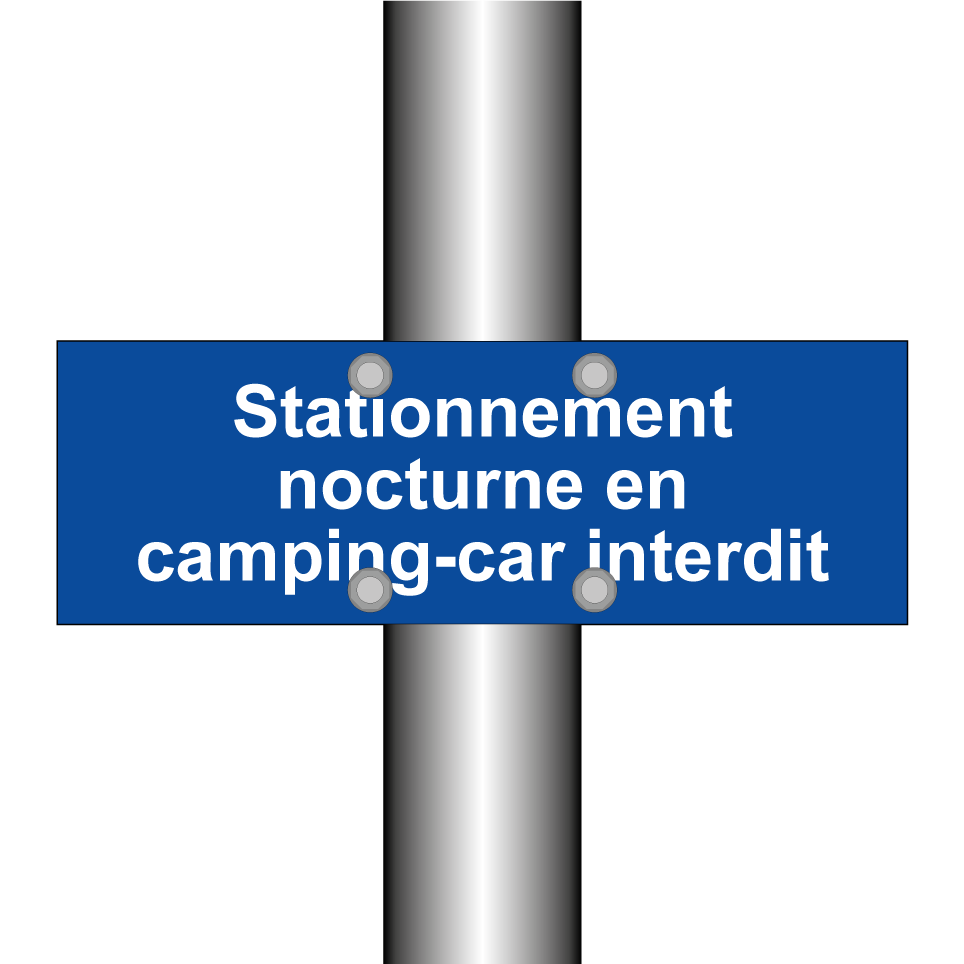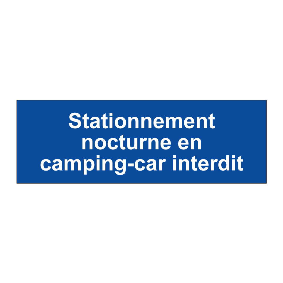 Panneau d'interdiction de stationner avec le texte : "Stationnement nocturne en camping-car interdit".