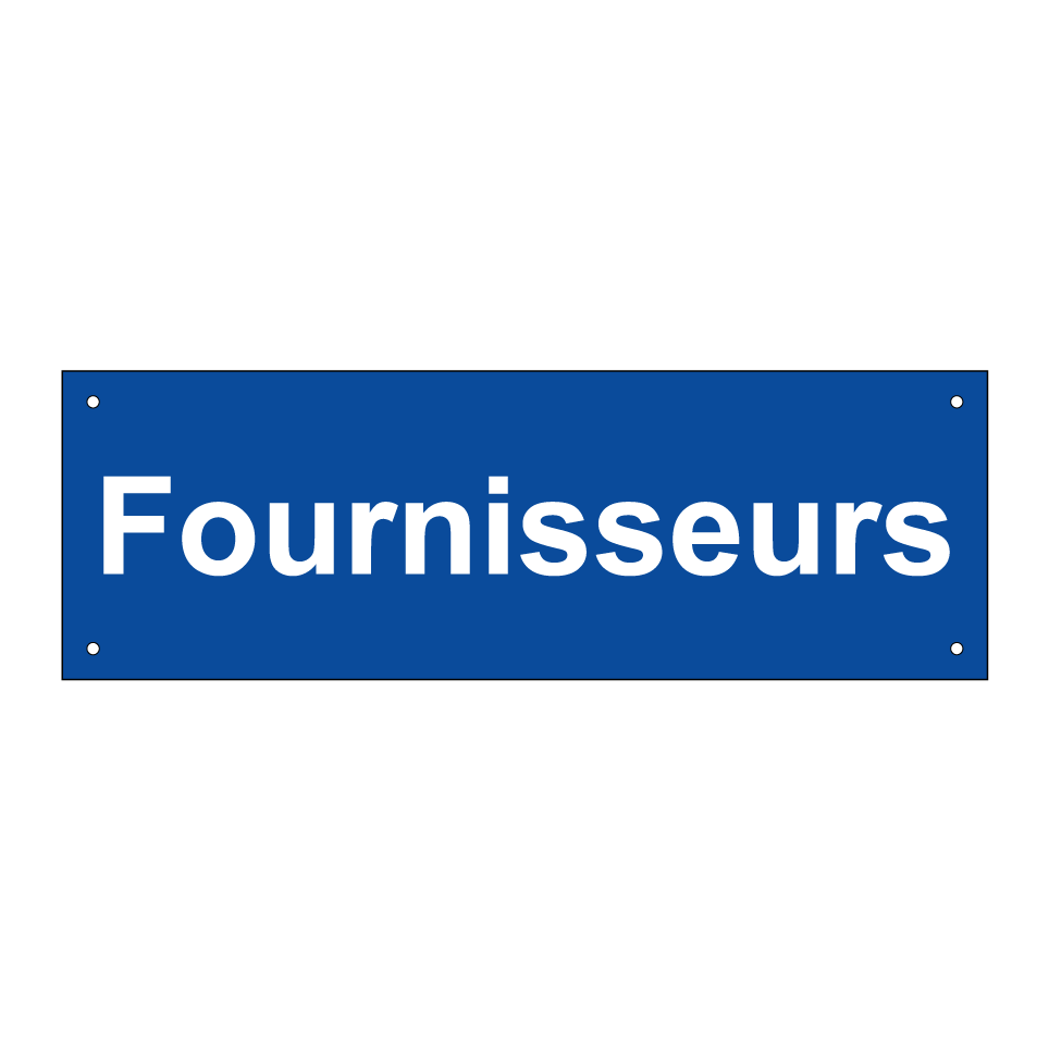 Le panneau "Fournisseurs" est idéal pour indiquer les zones de stationnement réservées aux fournisseurs. Ce panneau est parfait pour les entreprises, les entrepôts et les zones de livraison où l'accès doit être contrôlé. Grâce à sa couleur bleue et son texte blanc, il est facilement visible et attire l'attention. Placez-le à l'entrée des parkings ou à proximité des zones de chargement pour assurer un flux de travail efficace et éviter les stationnements non autorisés.
