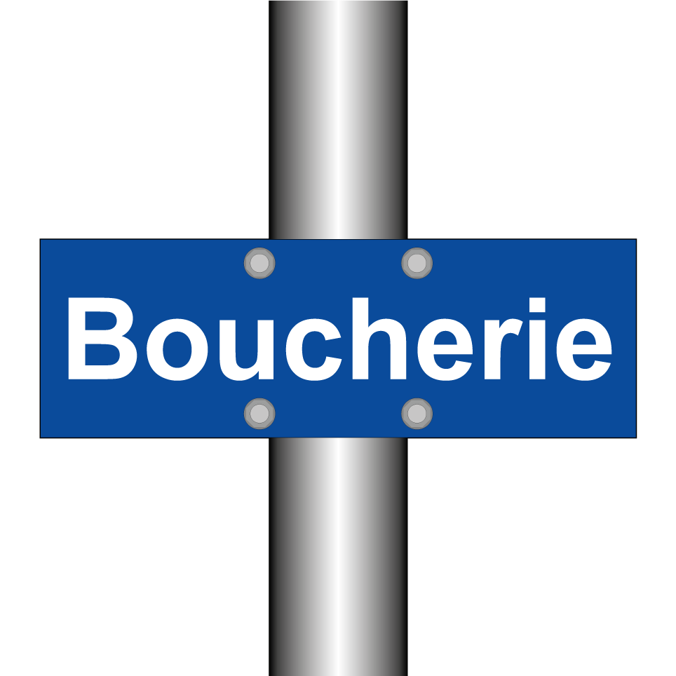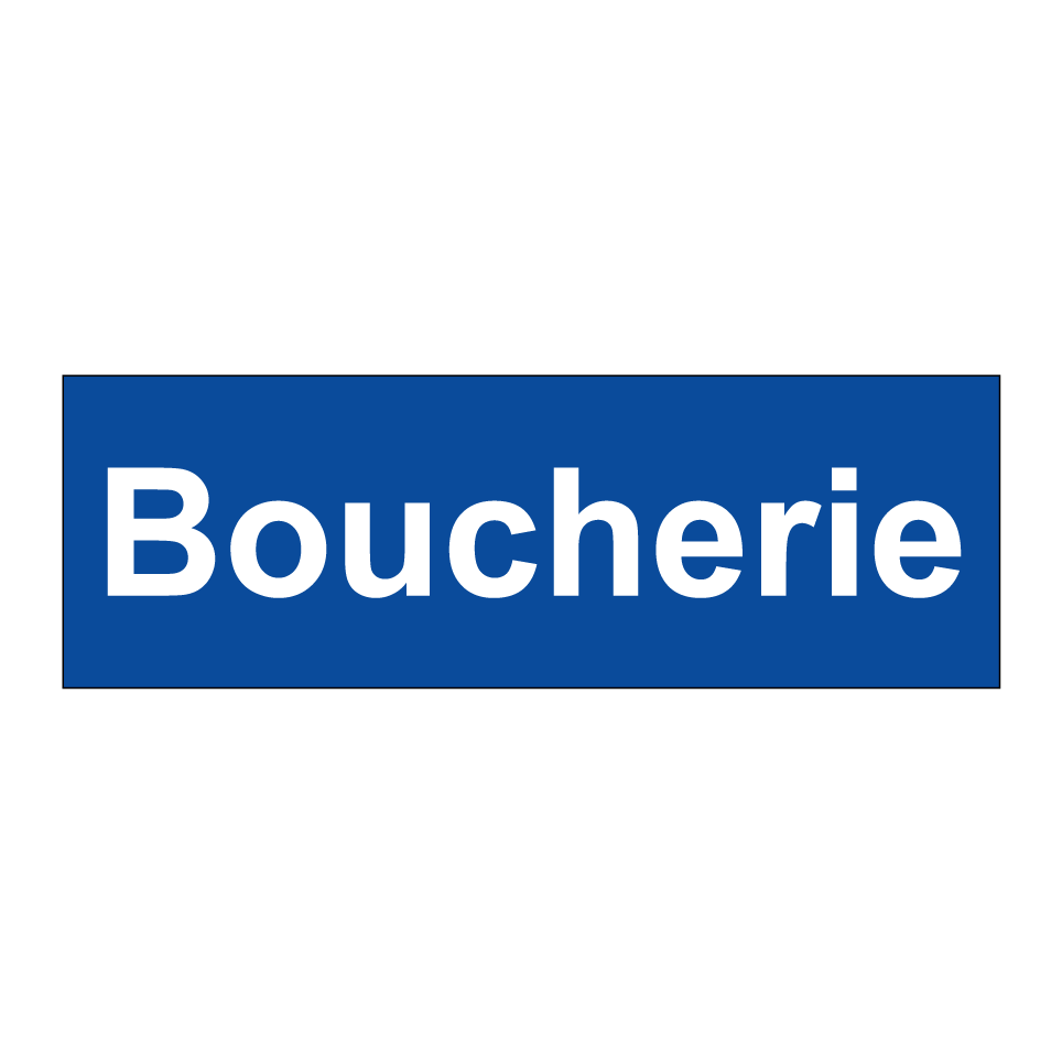 Panneau de stationnement avec le texte : "Boucherie".