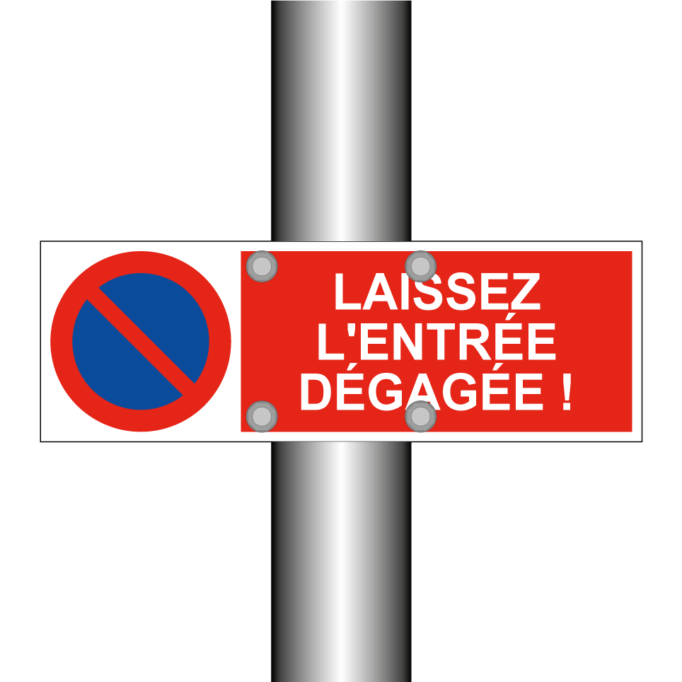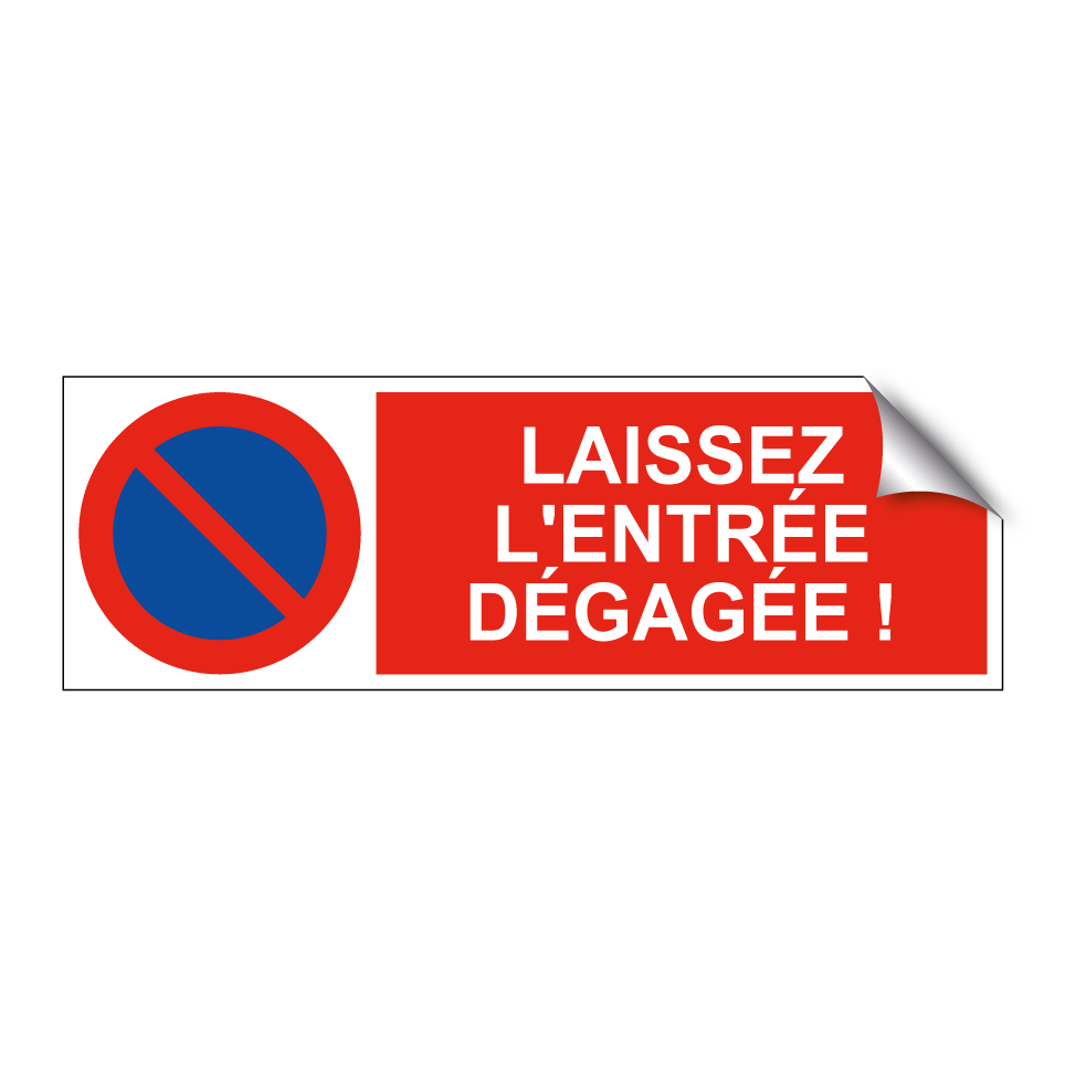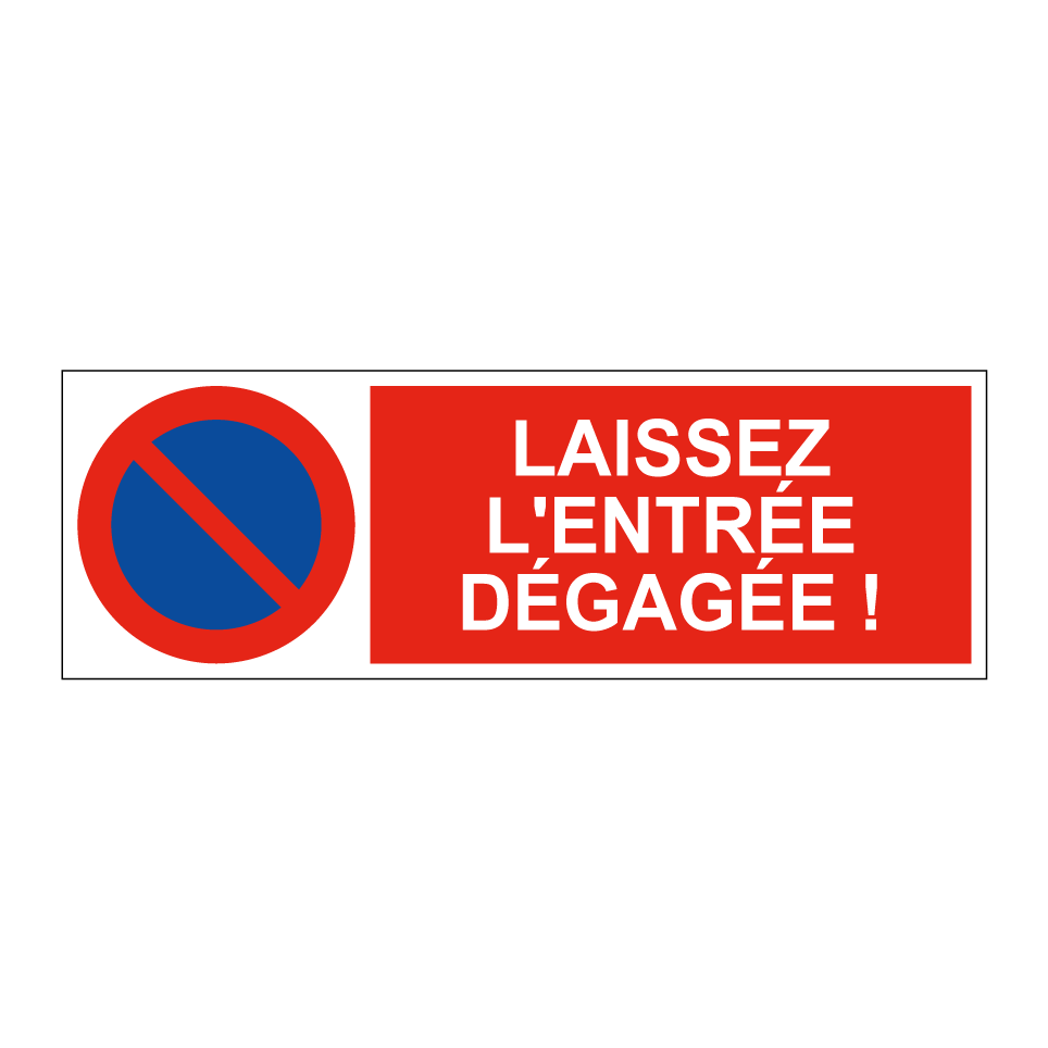Panneau d'interdiction de stationner avec le texte : "Laissez l'entrée dégagée !" et une symbolique claire.