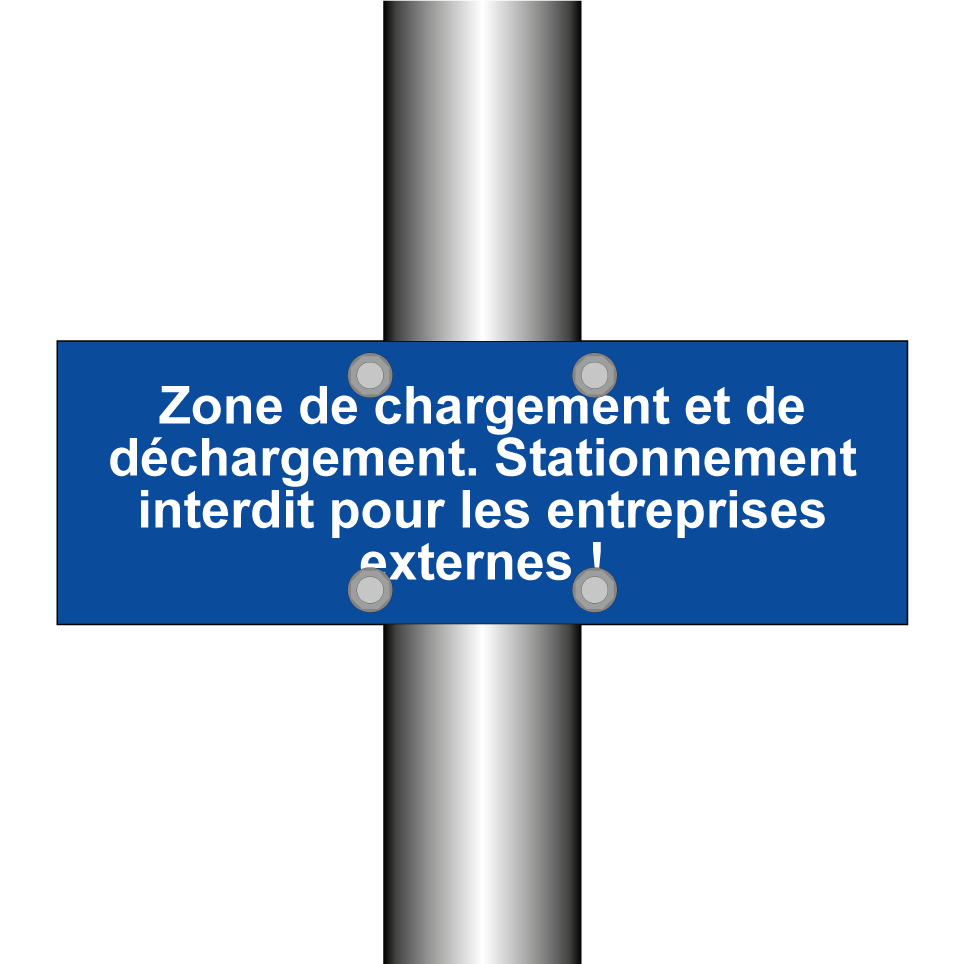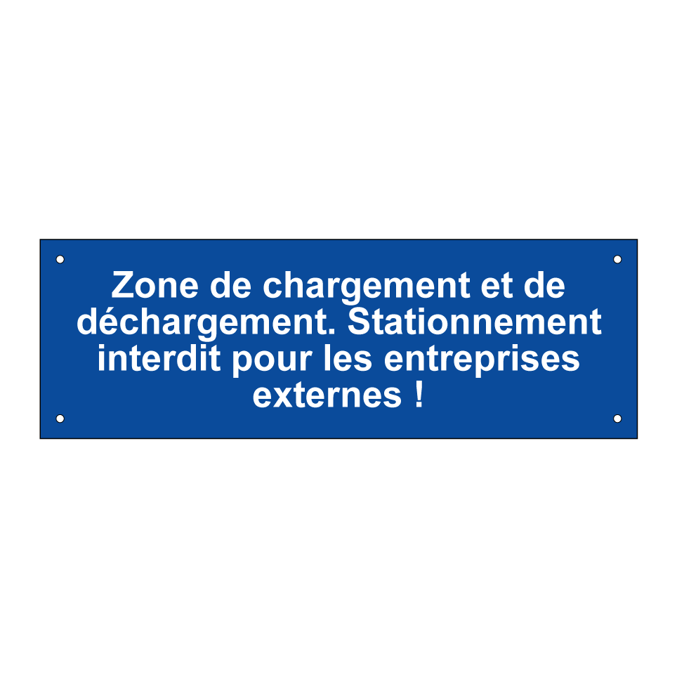 Panneau de stationnement avec le texte : "Zone de chargement et de déchargement. Stationnement interdit pour les entreprises externes !".