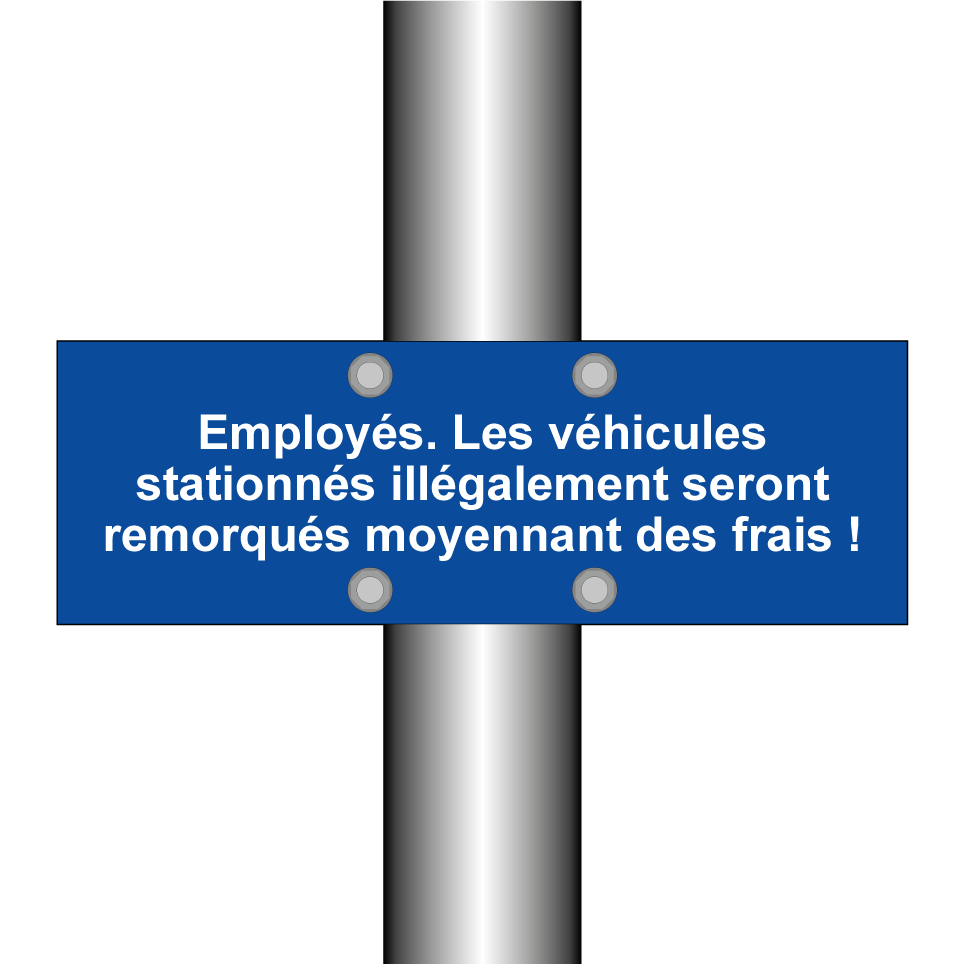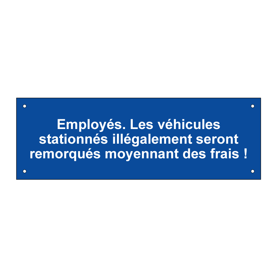 Panneau de stationnement avec le texte : "Employés. Les véhicules stationnés illégalement seront remorqués moyennant des frais !".