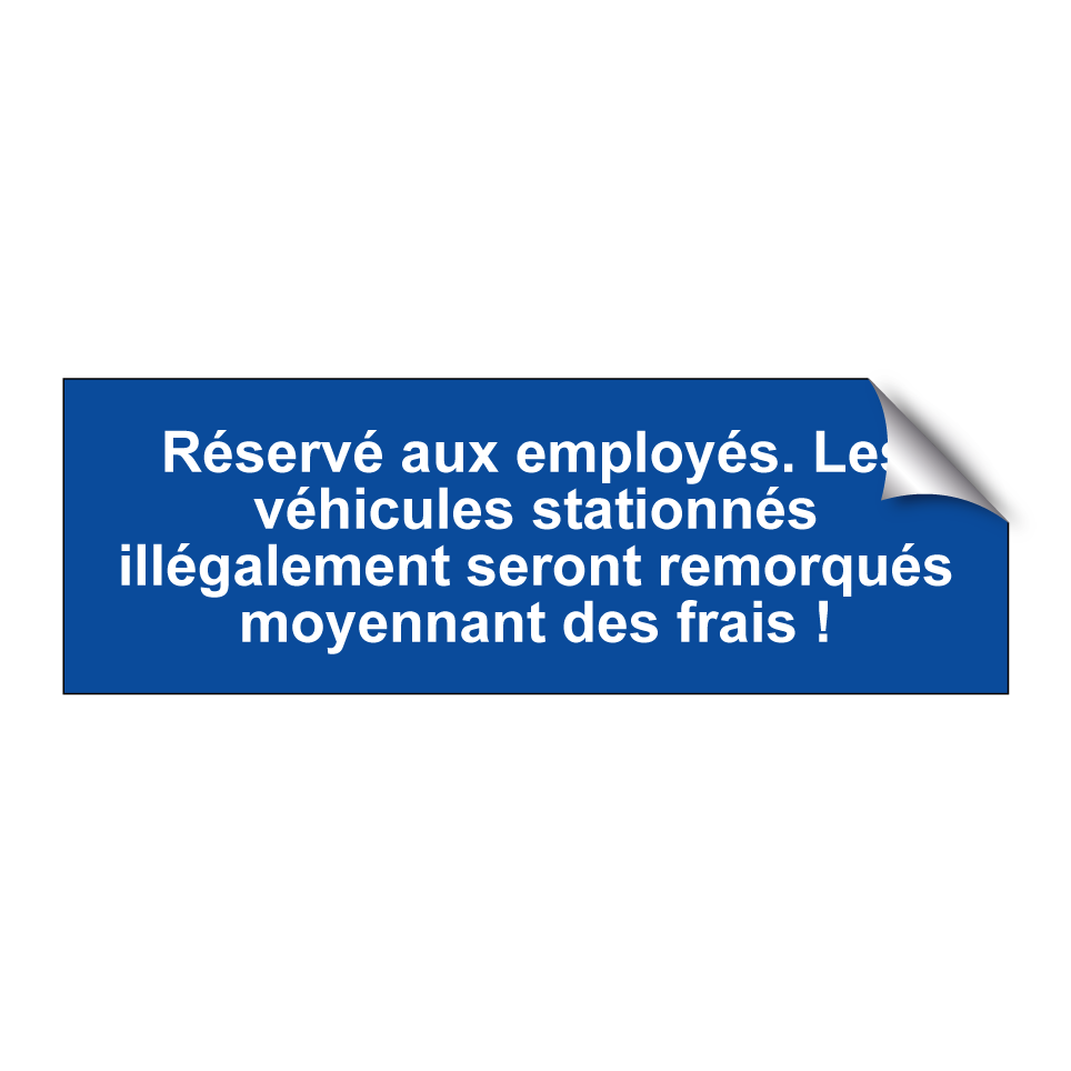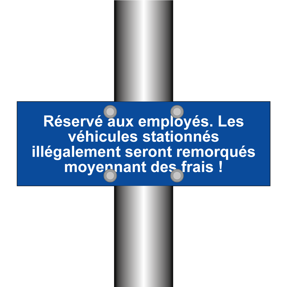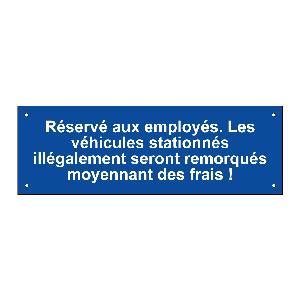 Panneau de stationnement avec le texte : "Réservé aux employés. Les véhicules stationnés illégalement seront remorqués moyennant des frais !".