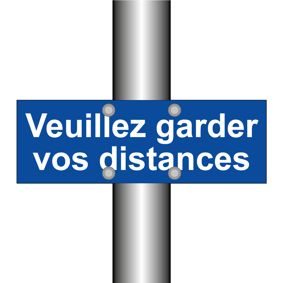 Panneau de stationnement avec le texte : "Veuillez garder vos distances".