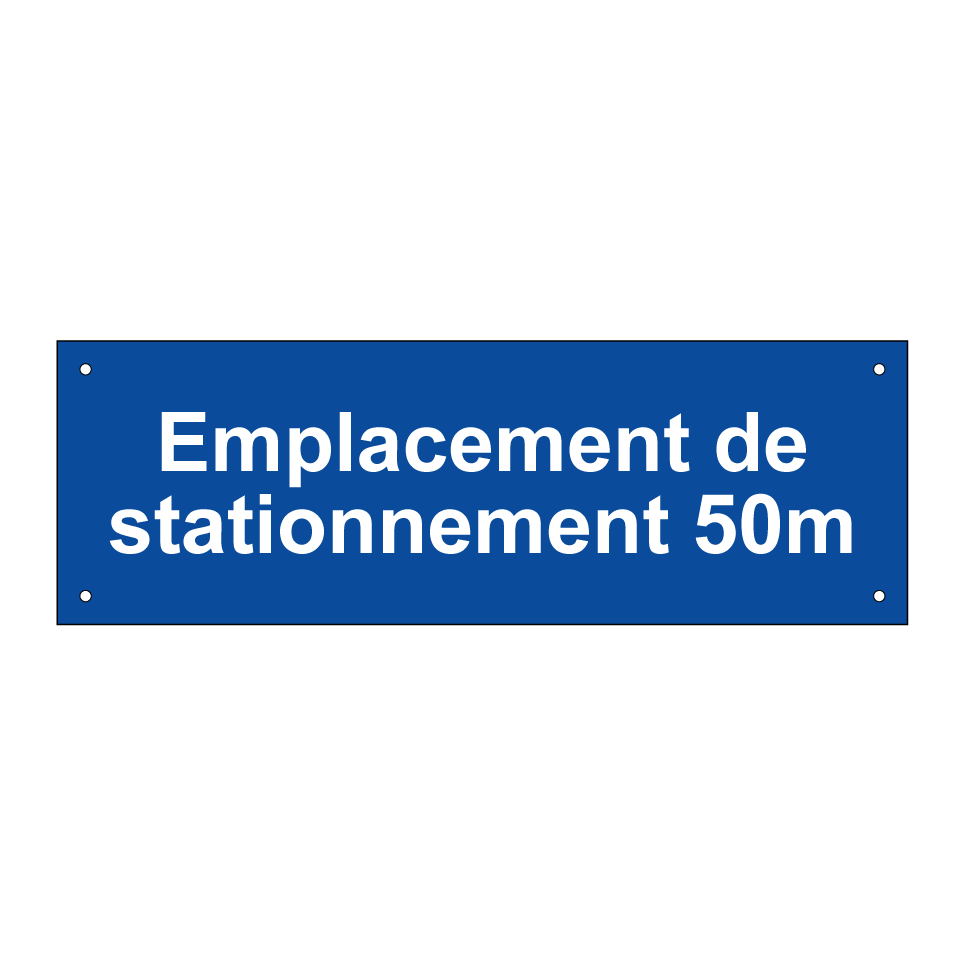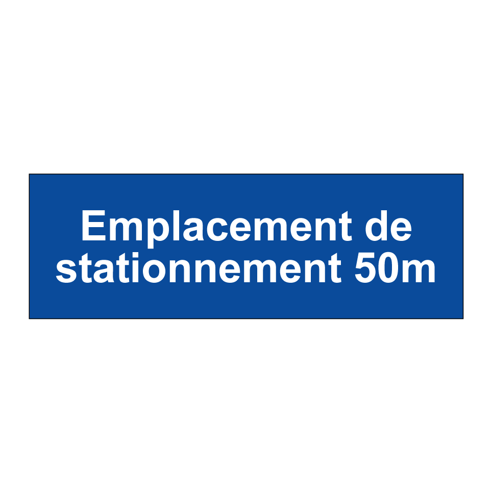 Panneau de stationnement avec le texte : "Emplacement de stationnement 50m".