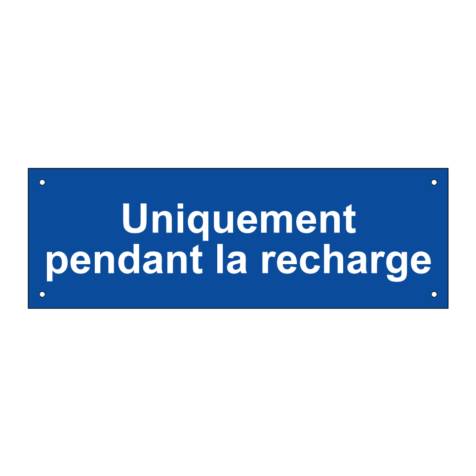 Ce panneau de stationnement est idéal pour les zones de recharge de véhicules électriques. Conçu pour être placé dans les parkings, les garages ou les espaces publics, il indique clairement que le stationnement est réservé uniquement pendant la recharge. Avec son fond bleu et son texte blanc, il est facilement visible et attire l'attention des conducteurs. Ce panneau est essentiel pour organiser efficacement les espaces de recharge et garantir que les places soient utilisées de manière appropriée.