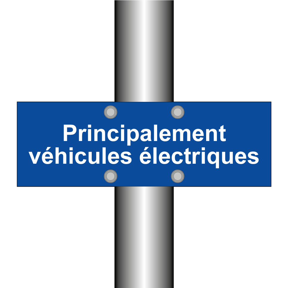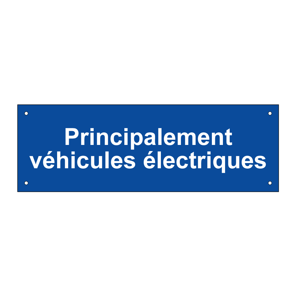 Panneau de stationnement avec le texte : "Principalement véhicules électriques".