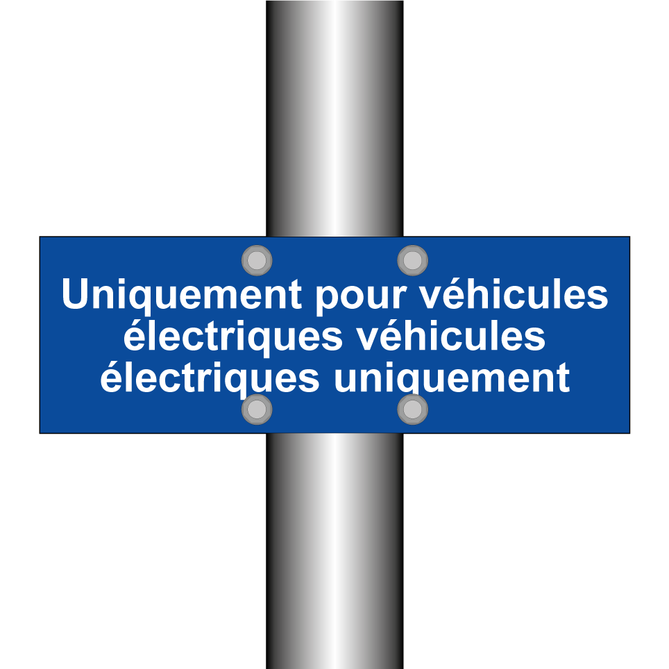 Panneau de stationnement avec le texte : "Uniquement pour véhicules électriques véhicules électriques uniquement".