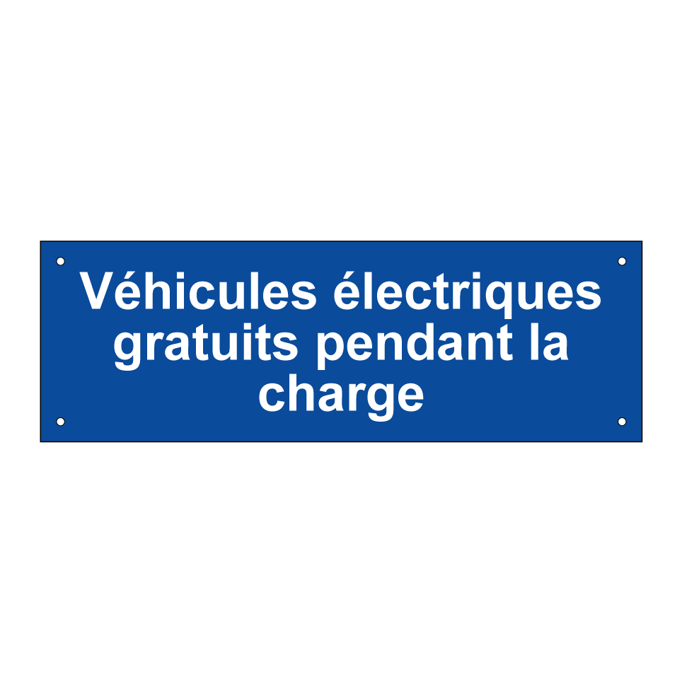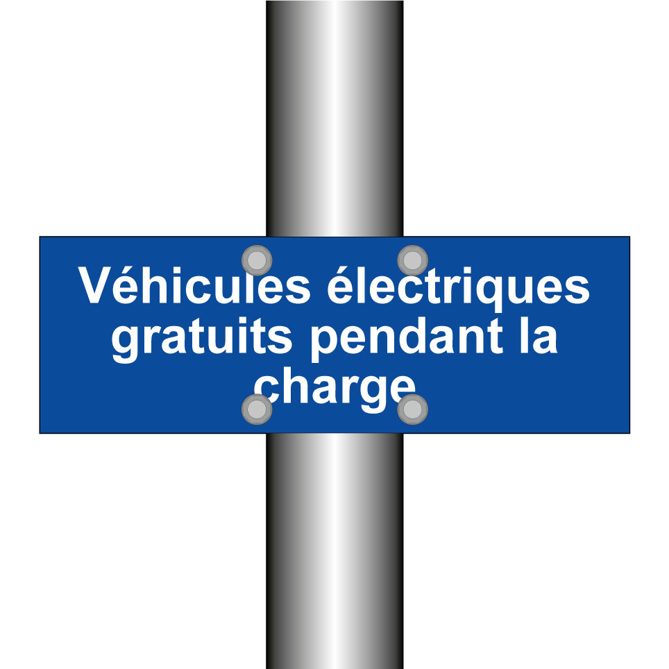 Panneau de stationnement avec le texte : "Véhicules électriques gratuits pendant la charge".