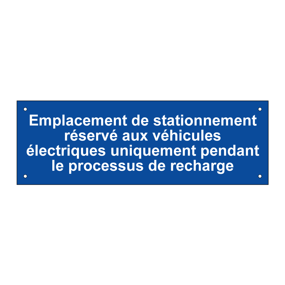 Ce panneau est idéal pour indiquer les emplacements réservés aux véhicules électriques en cours de recharge. Parfait pour les parkings publics, les centres commerciaux ou les entreprises, il assure que les conducteurs de voitures électriques trouvent facilement leur place. Avec son design clair et sa couleur bleue, il est visible de loin, garantissant une signalisation efficace. Installez-le à l'entrée des zones de stationnement ou à proximité des bornes de recharge pour une meilleure orientation des usagers.