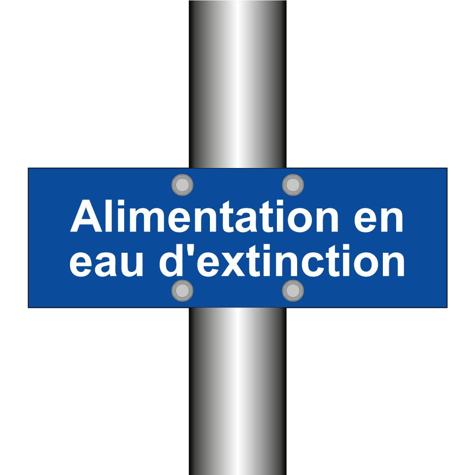 Panneau d'interdiction de stationner avec le texte : "Alimentation en eau d'extinction".