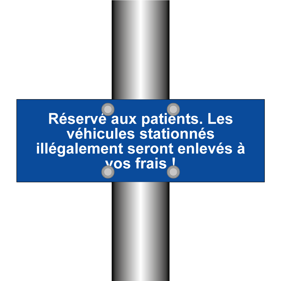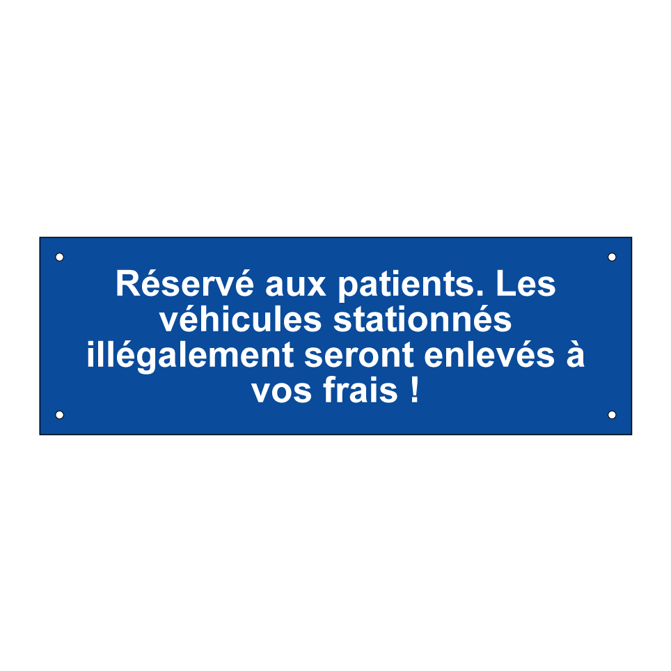 Panneau de stationnement avec le texte : "Réservé aux patients. Les véhicules stationnés illégalement seront enlevés à vos frais !".