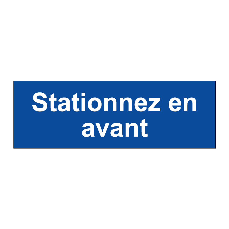 Panneau de stationnement avec le texte : "Stationnez en avant".