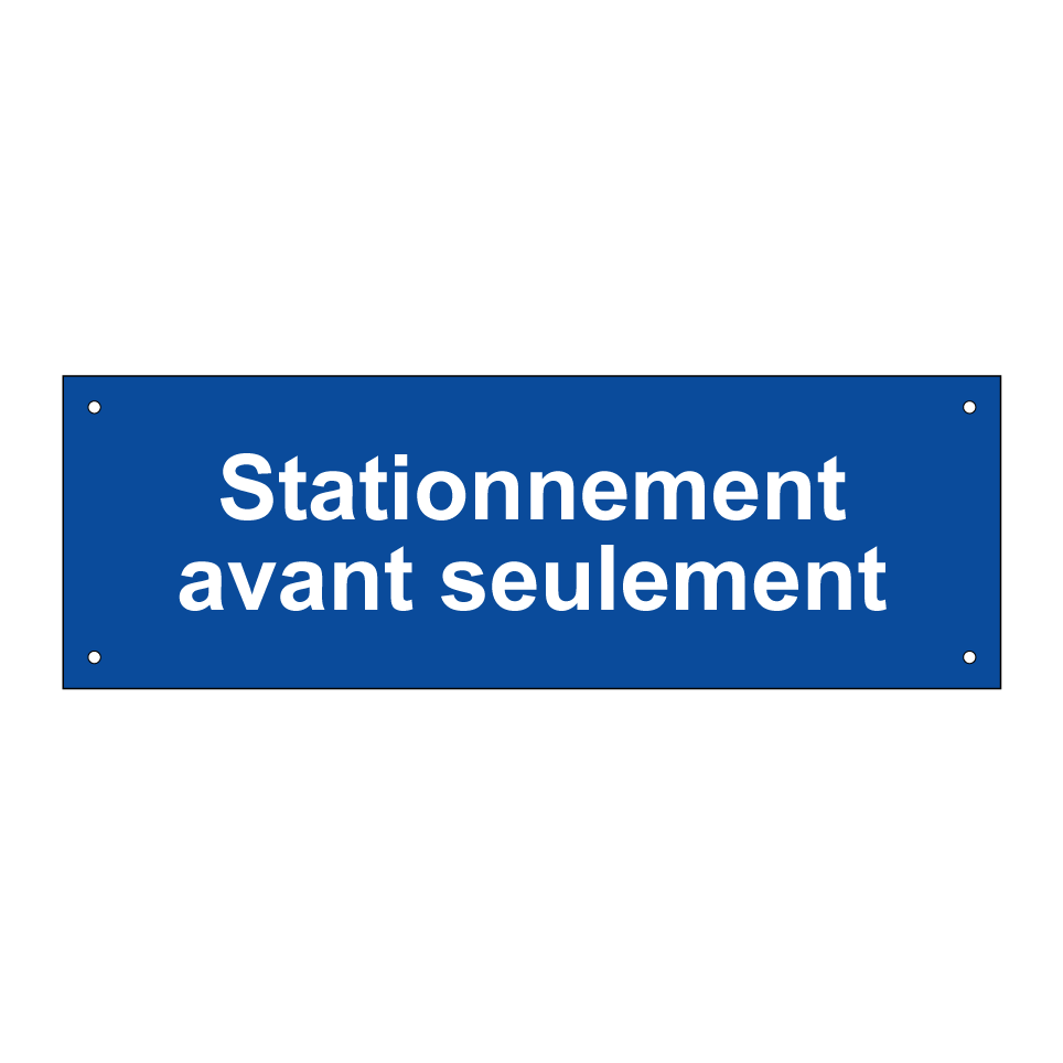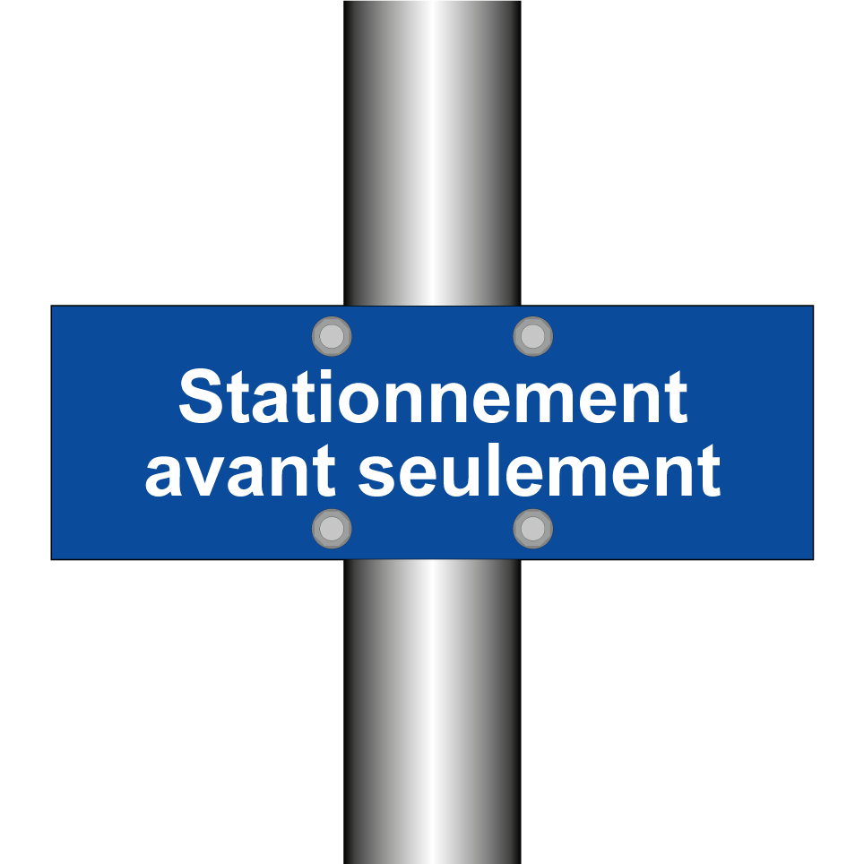 Panneau de stationnement avec le texte : "Stationnement avant seulement".