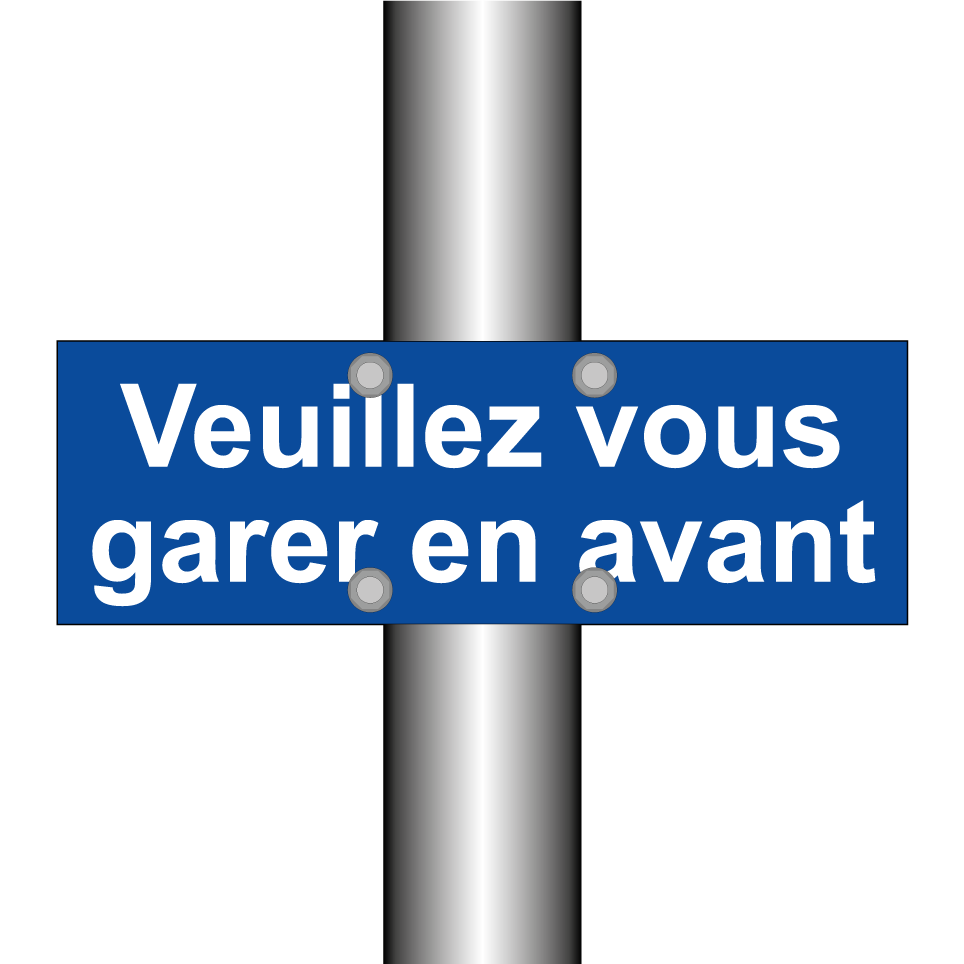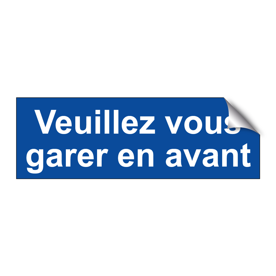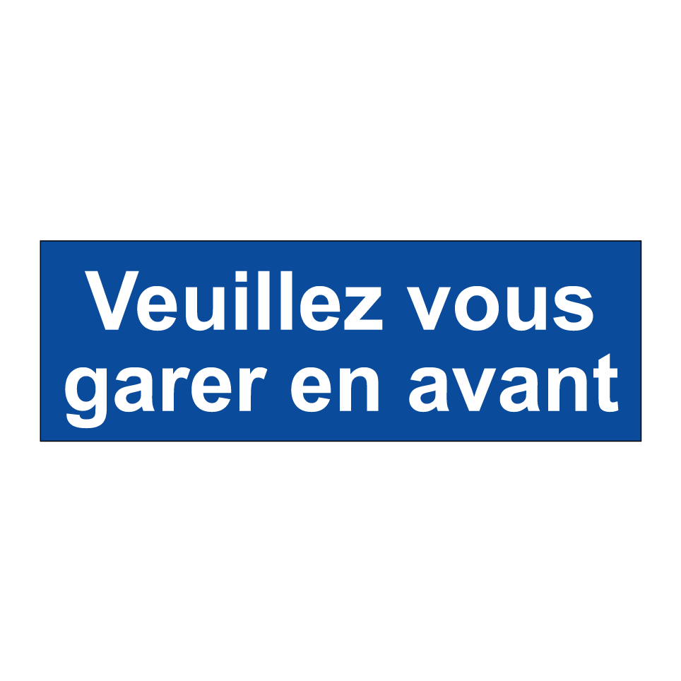 Panneau de stationnement avec le texte : "Veuillez vous garer en avant".