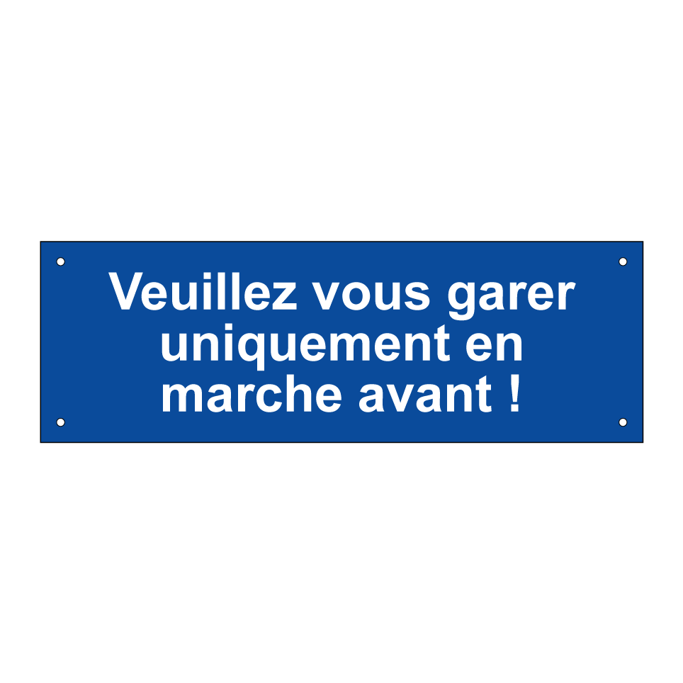 Panneau de stationnement avec le texte : "Veuillez vous garer uniquement en marche avant !".