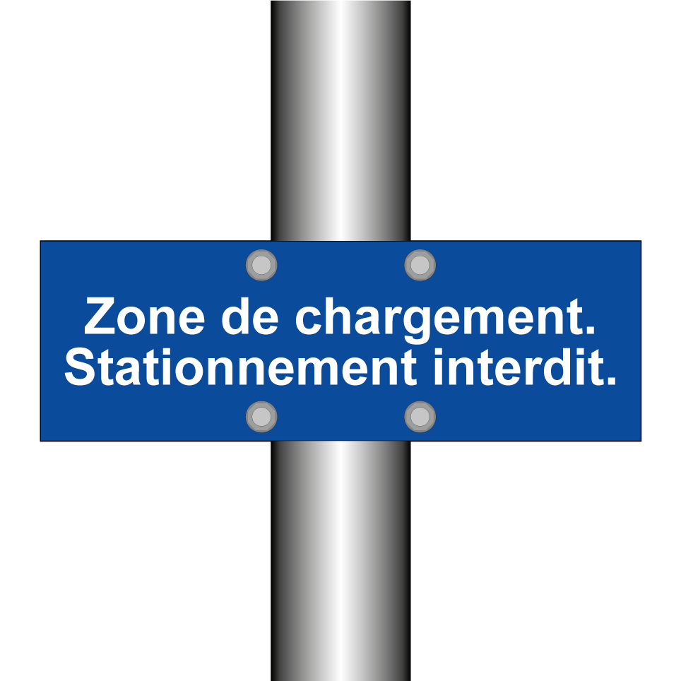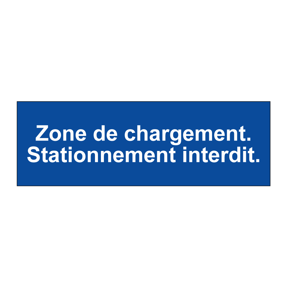 Panneau d'interdiction de stationner avec le texte : "Zone de chargement. Stationnement interdit.".