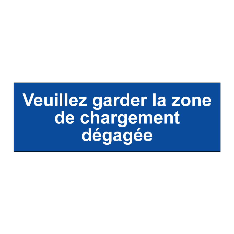 Panneau de stationnement avec le texte : "Veuillez garder la zone de chargement dégagée".