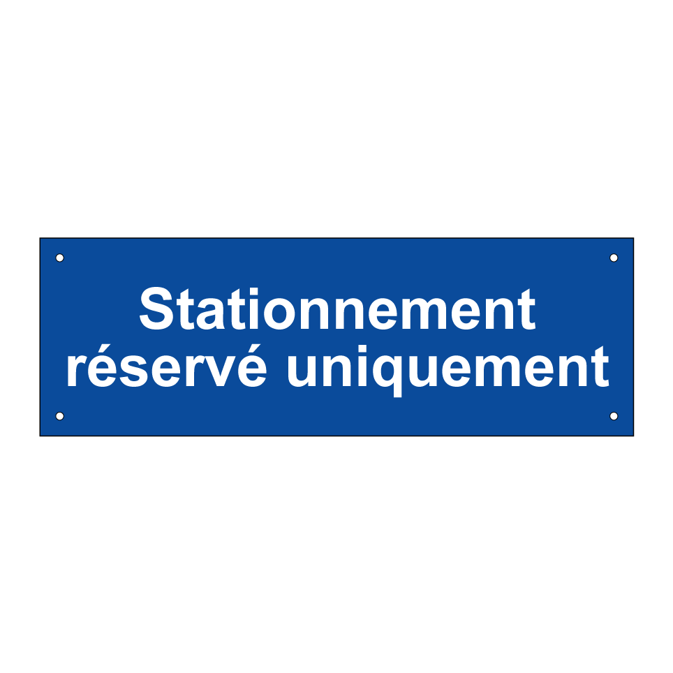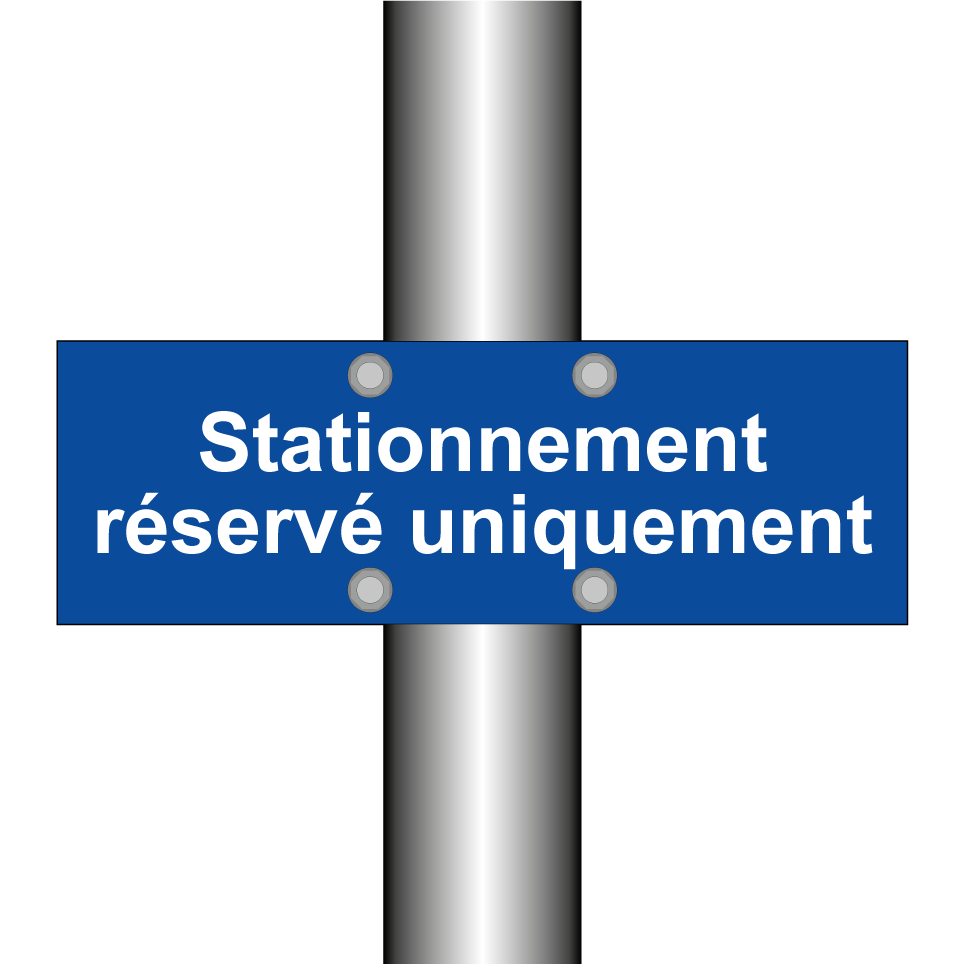Panneau de stationnement avec le texte : "Stationnement réservé uniquement".