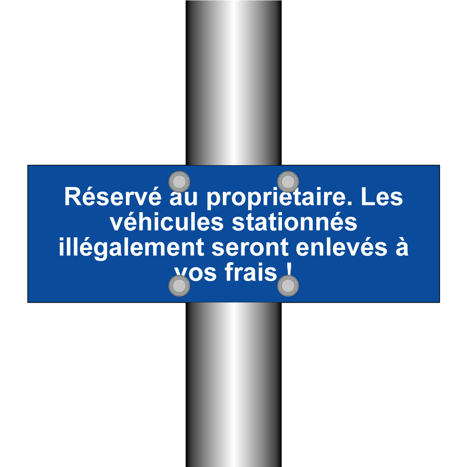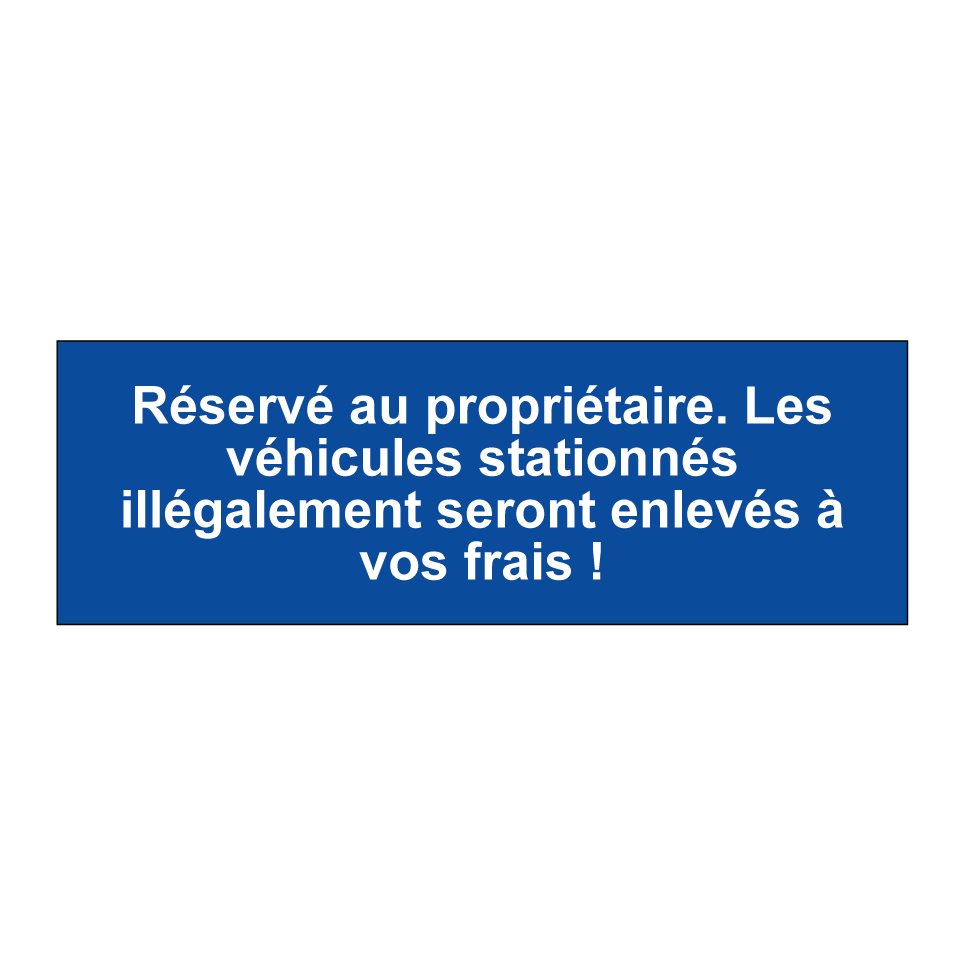 Panneau de stationnement avec le texte : "Réservé au propriétaire. Les véhicules stationnés illégalement seront enlevés à vos frais !".