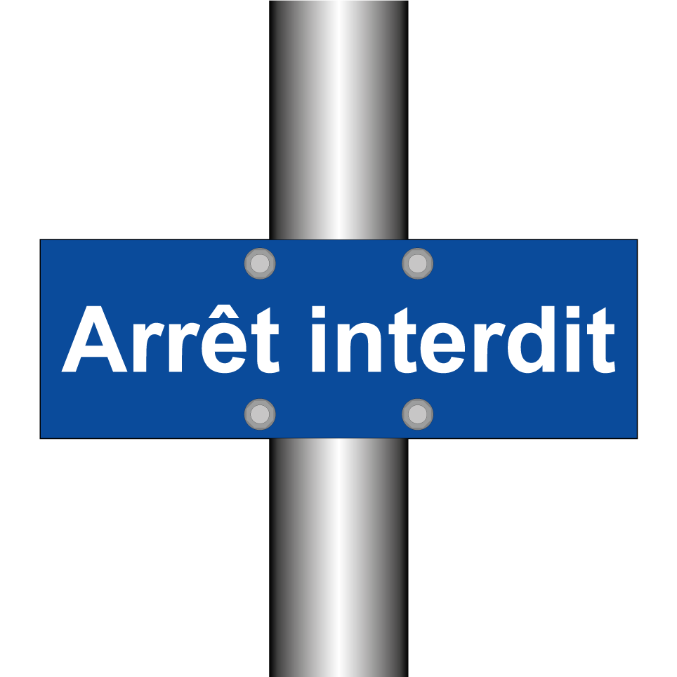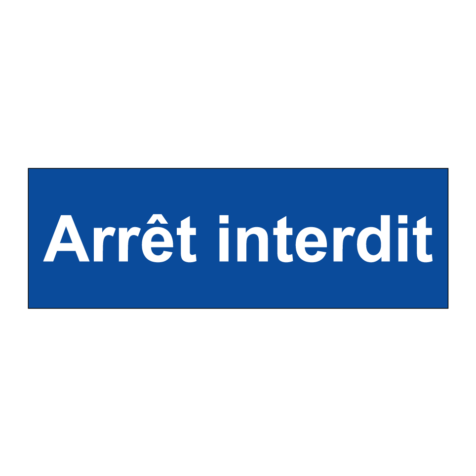 Panneau d'interdiction de stationner avec le texte : "Arrêt interdit".