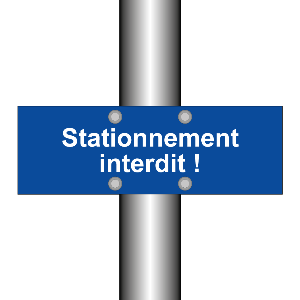Panneau d'interdiction de stationner avec le texte : "Stationnement interdit !".