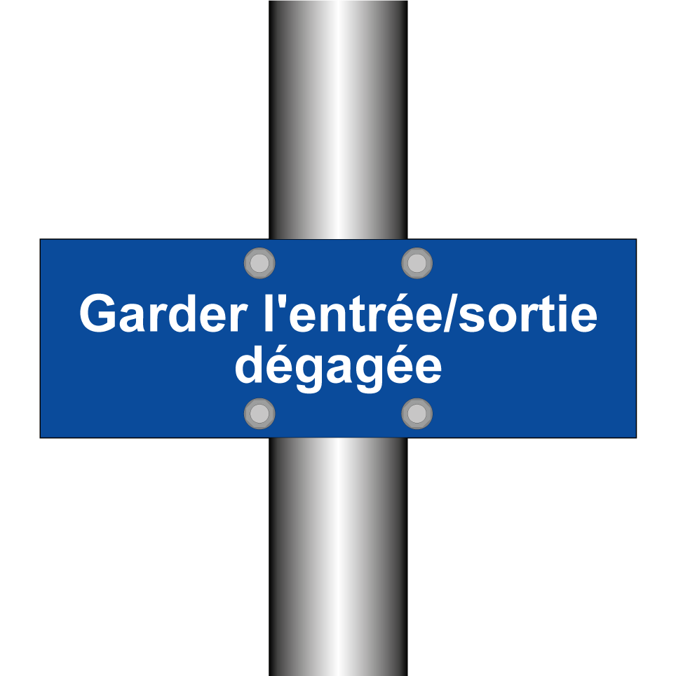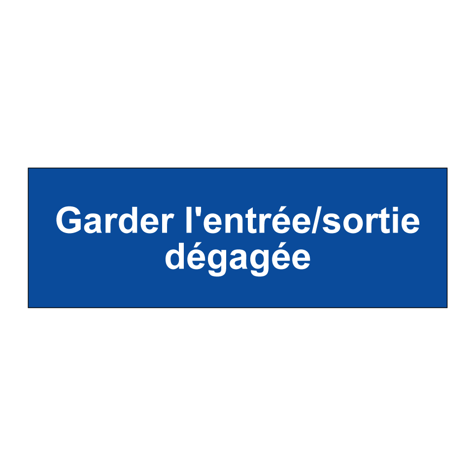 Panneau d'interdiction de stationner avec le texte : "Garder l'entrée/sortie dégagée".