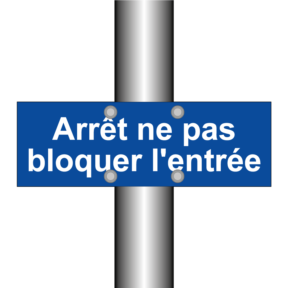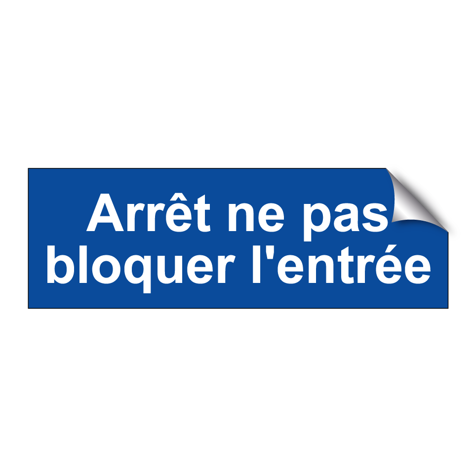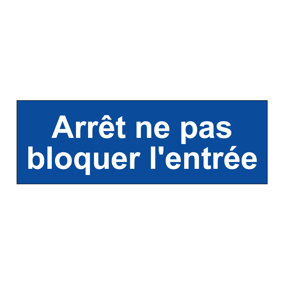 Panneau d'interdiction de stationner avec le texte : "Arrêt ne pas bloquer l'entrée".