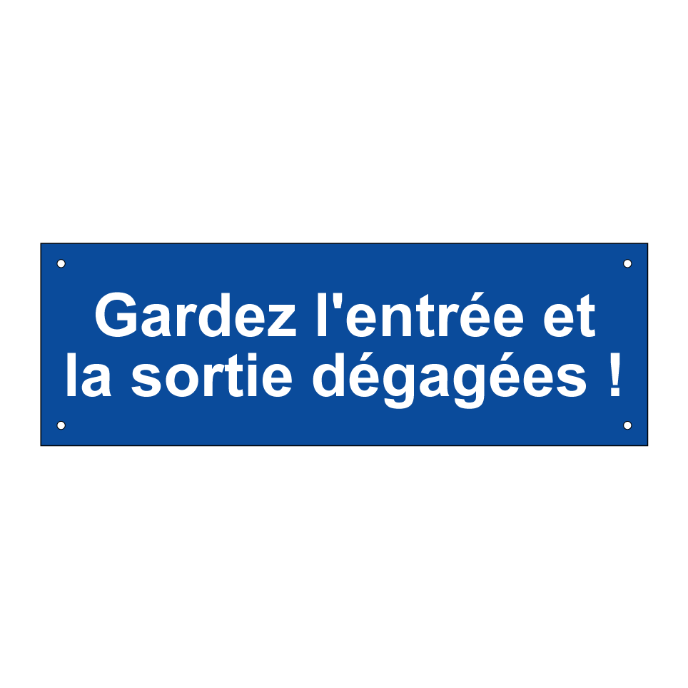 Panneau d'interdiction de stationner avec le texte : "Gardez l'entrée et la sortie dégagées !".