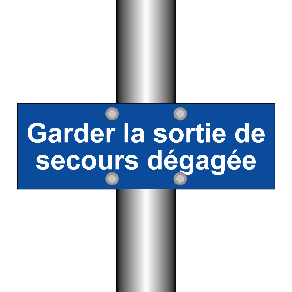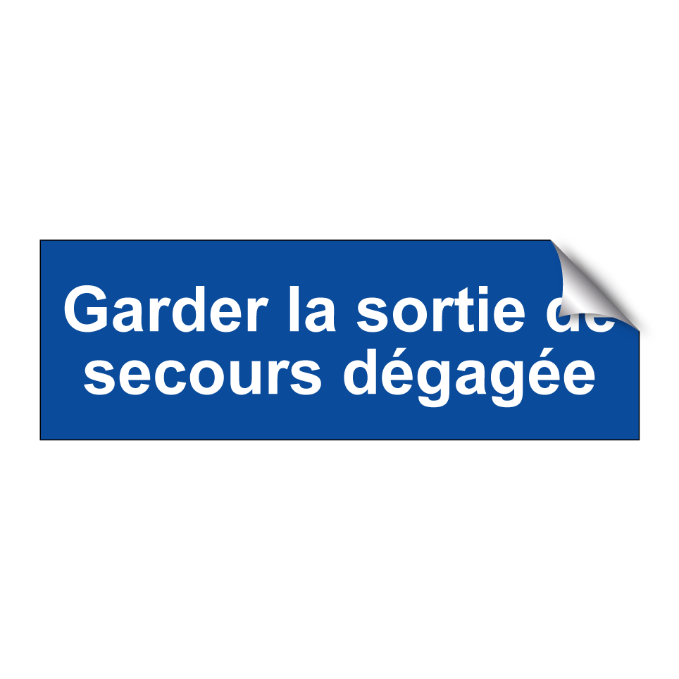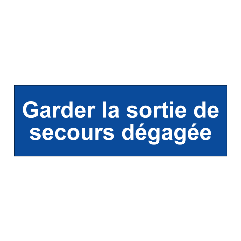 Panneau d'interdiction de stationner avec le texte : "Garder la sortie de secours dégagée".