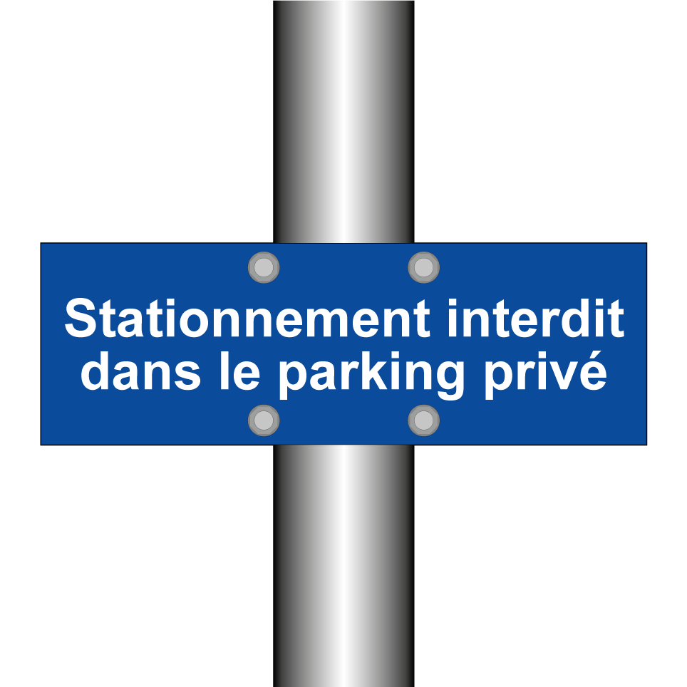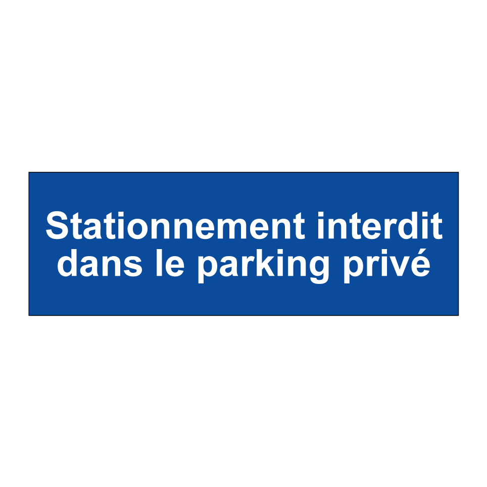 Panneau d'interdiction de stationner avec le texte : "Stationnement interdit dans le parking privé".