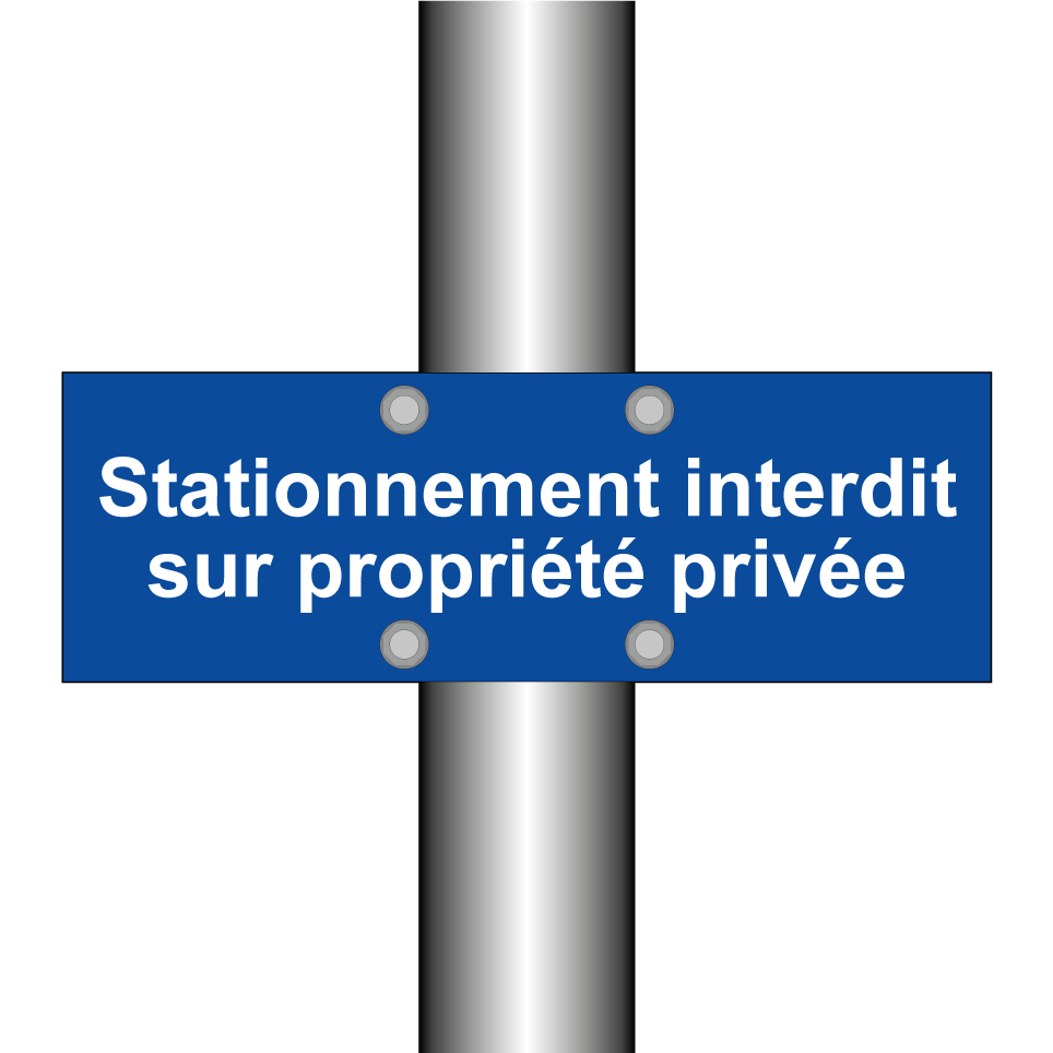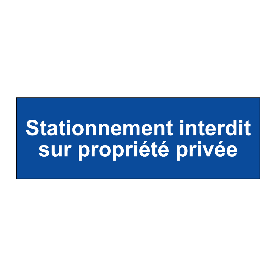 Panneau d'interdiction de stationner avec le texte : "Stationnement interdit sur propriété privée".