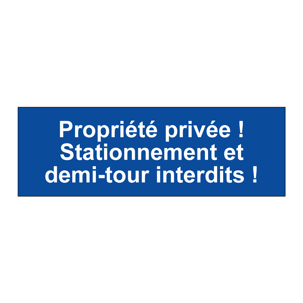 Panneau d'interdiction de stationner avec le texte : "Propriété privée ! Stationnement et demi-tour interdits !".
