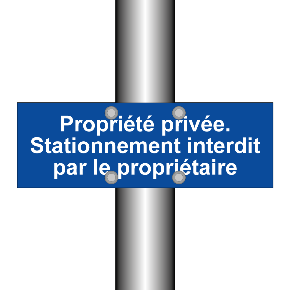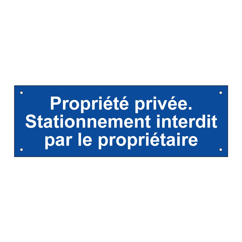 Panneau d'interdiction de stationner avec le texte : "Propriété privée. Stationnement interdit par le propriétaire".