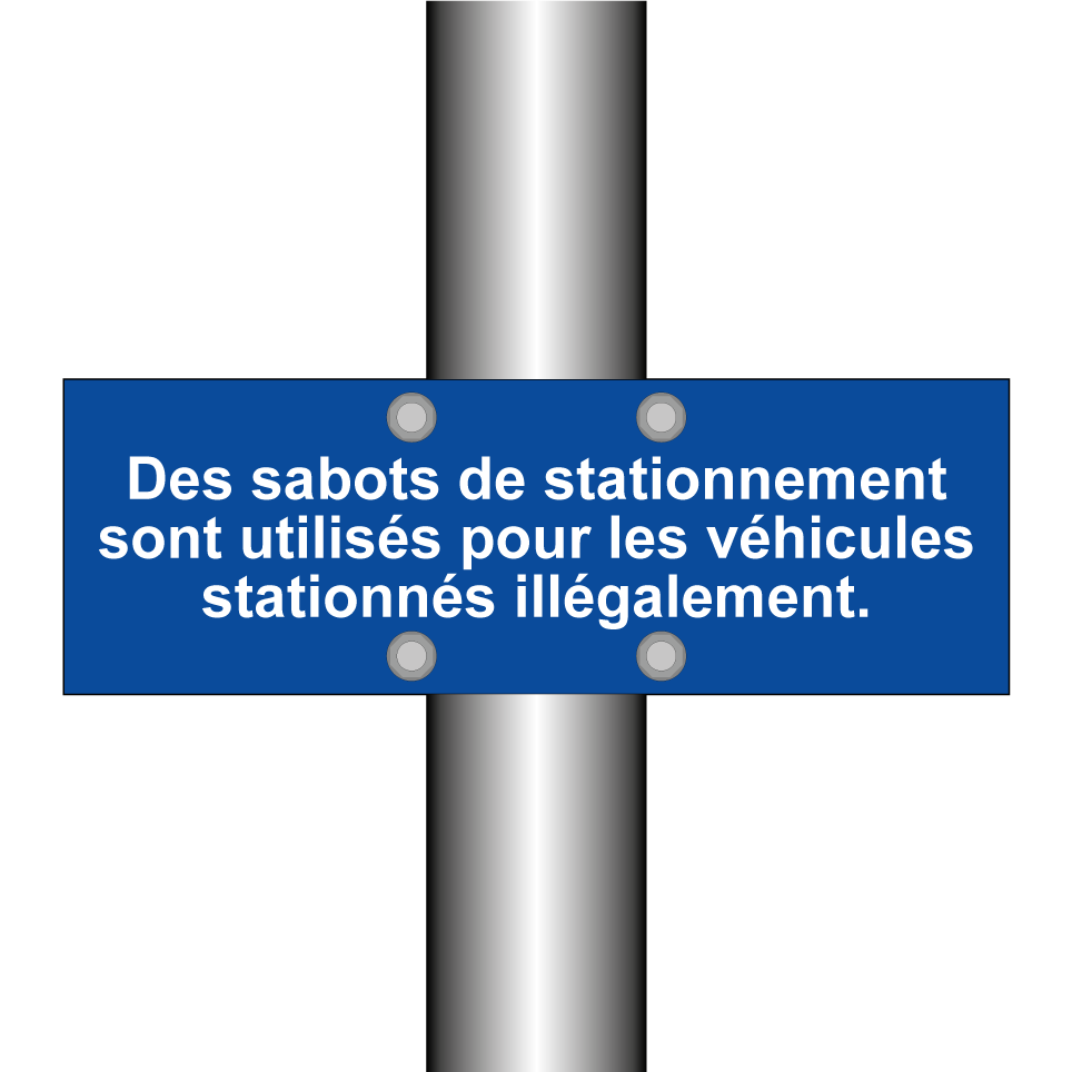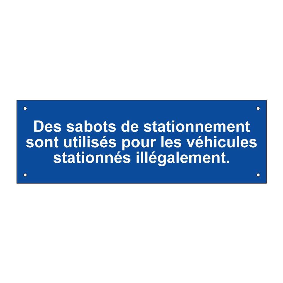 Panneau d'interdiction de stationner avec le texte : "Des sabots de stationnement sont utilisés pour les véhicules stationnés illégalement.".