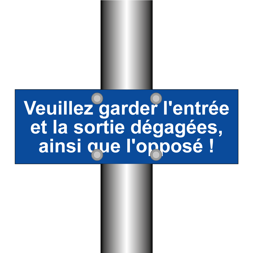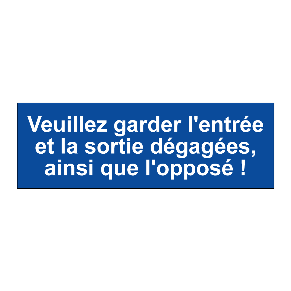 Panneau d'interdiction de stationner avec le texte : "Veuillez garder l'entrée et la sortie dégagées, ainsi que l'opposé !".