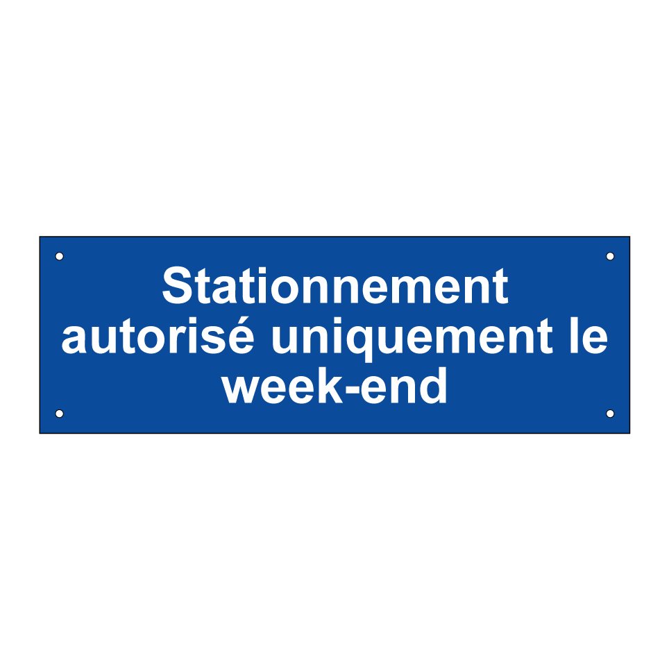 Panneau de stationnement avec le texte : "Stationnement autorisé uniquement le week-end".