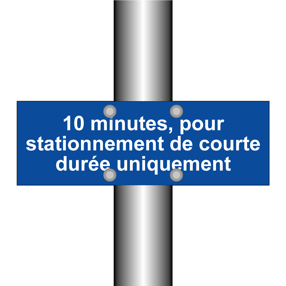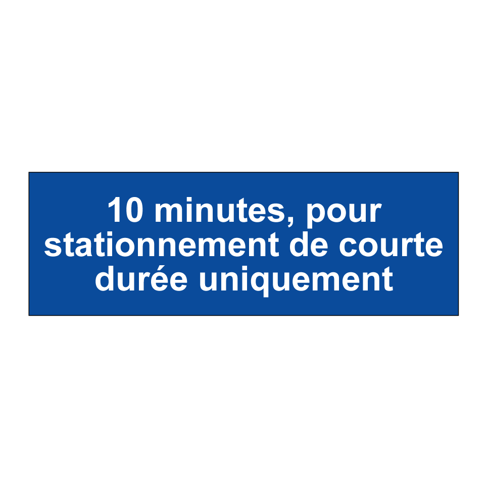 Panneau de stationnement avec le texte : "10 minutes, pour stationnement de courte durée uniquement".