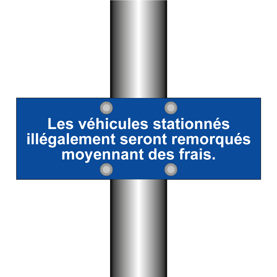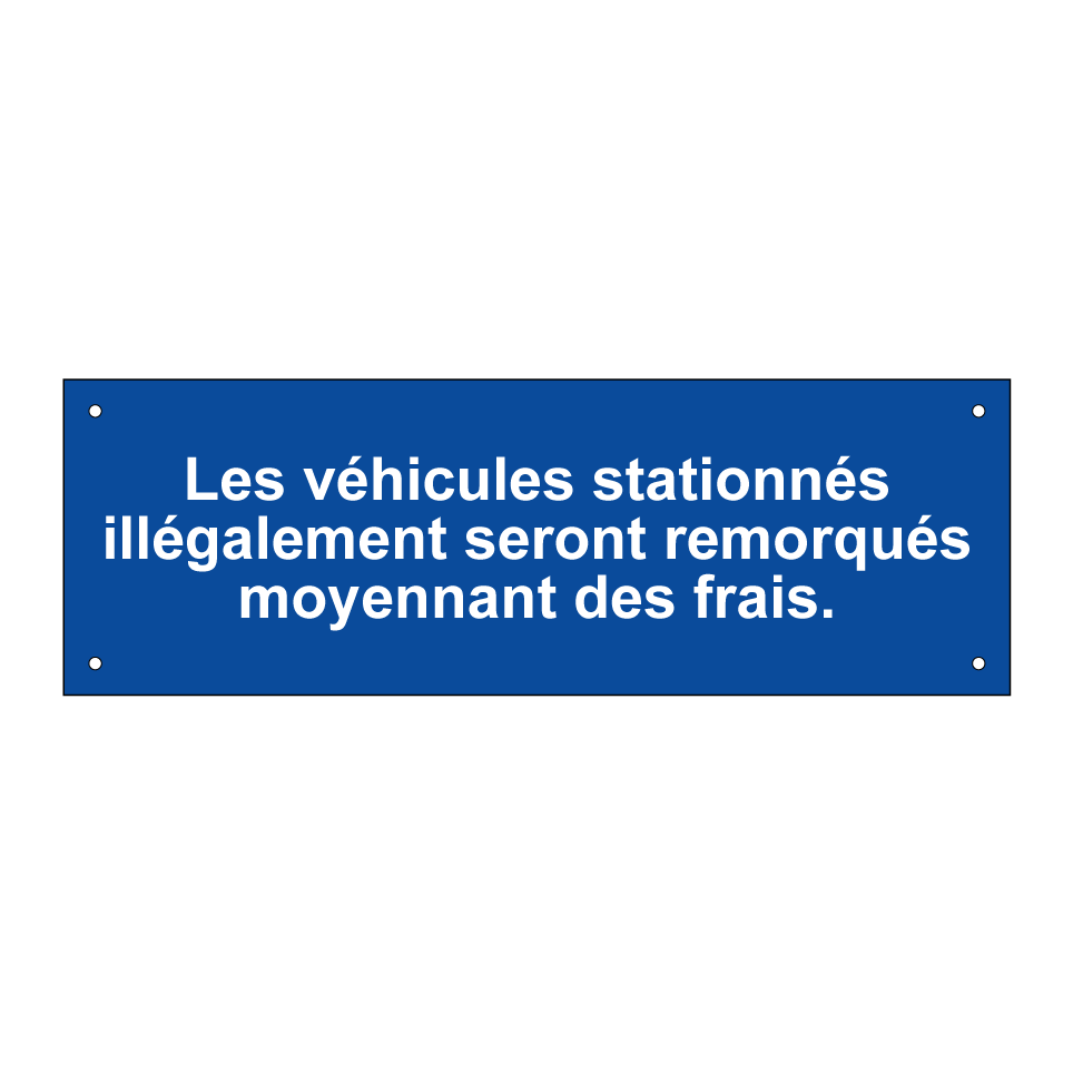 Panneau de stationnement avec le texte : "Les véhicules stationnés illégalement seront remorqués moyennant des frais.".