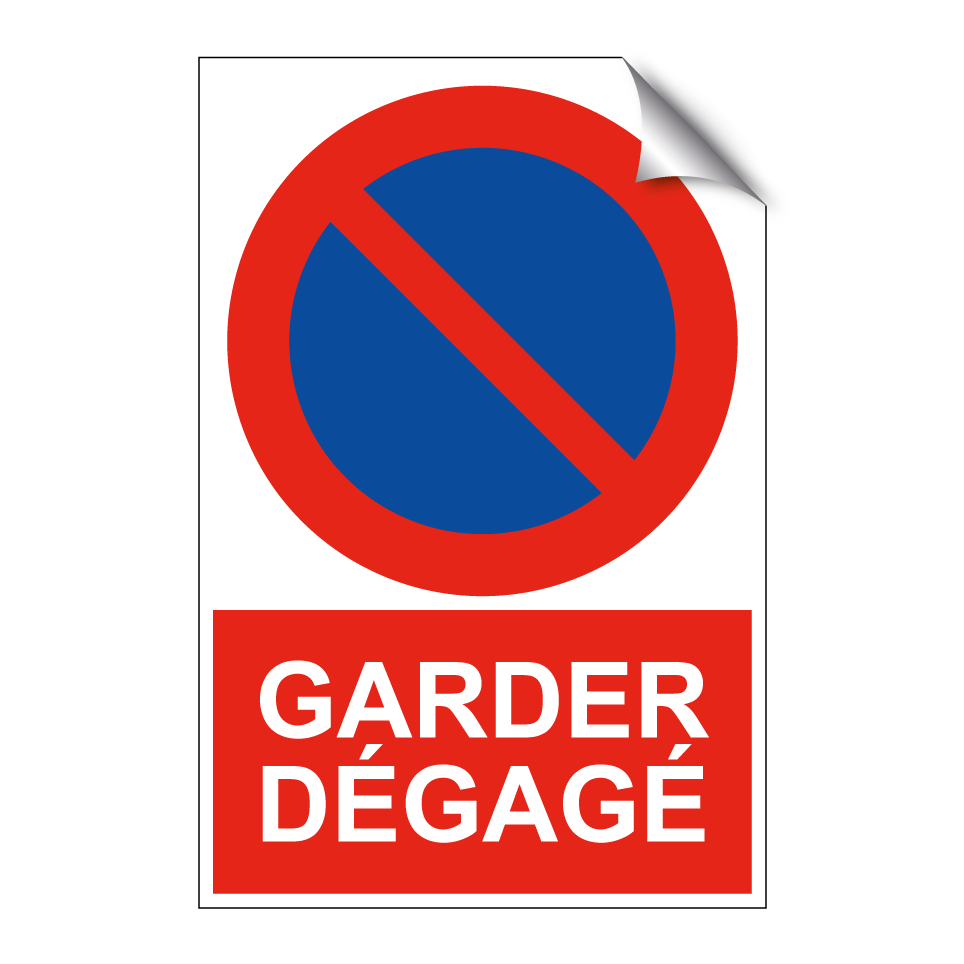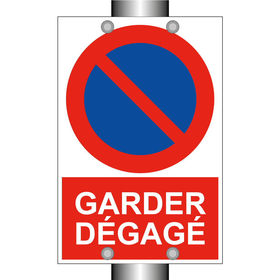Panneau d'interdiction de stationner avec le texte : "Garder dégagé" et une symbolique claire.