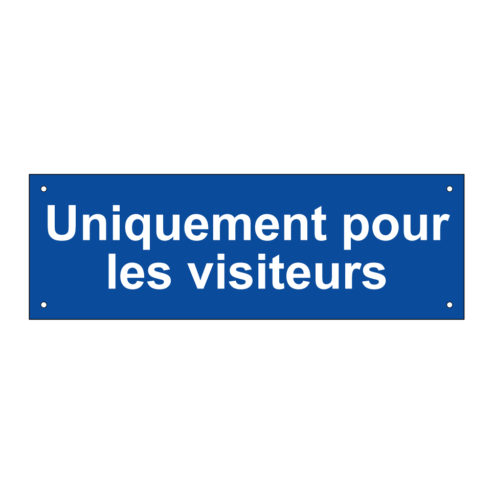 Ce panneau de stationnement est idéal pour indiquer les zones réservées aux visiteurs. Avec son fond bleu et son texte blanc, il est facilement visible et attire l'attention. Parfait pour les parkings d'entreprises, hôtels ou complexes résidentiels, il assure que les places de stationnement sont utilisées correctement. Installez-le à l'entrée de votre parking ou à proximité des espaces dédiés pour garantir une gestion efficace des emplacements réservés aux invités.