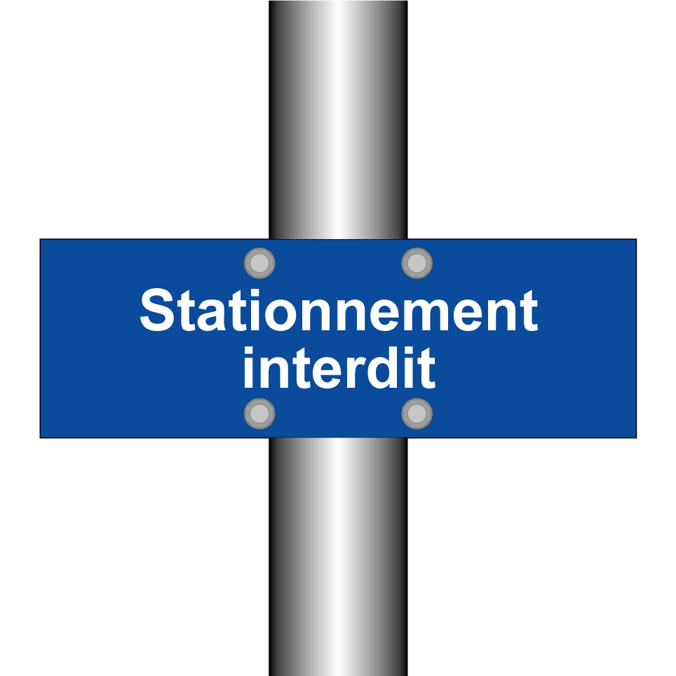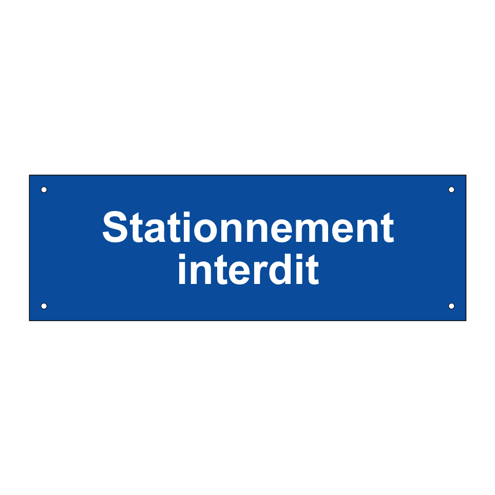 Panneau d'interdiction de stationner avec le texte : "Stationnement interdit".