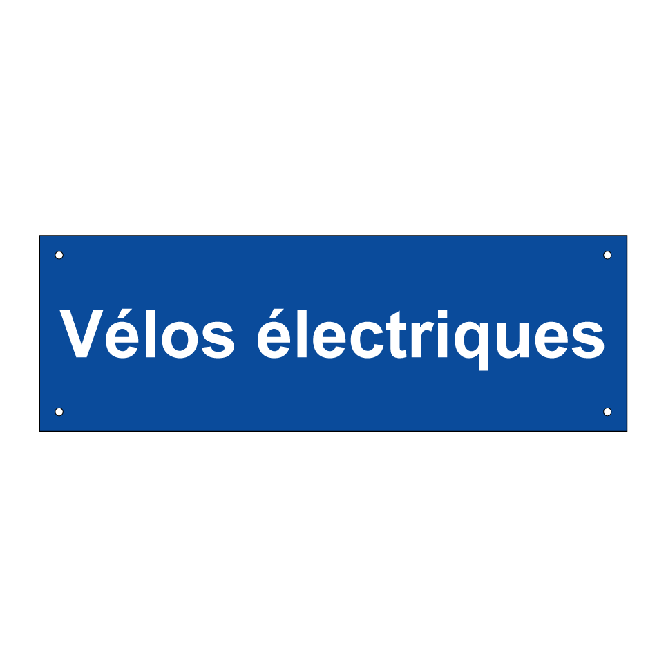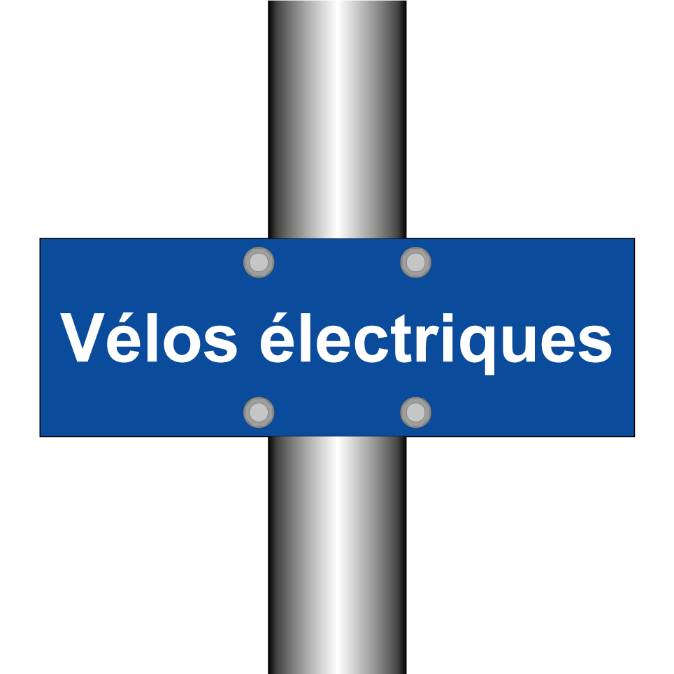 Panneau de stationnement avec le texte : "Vélos électriques".